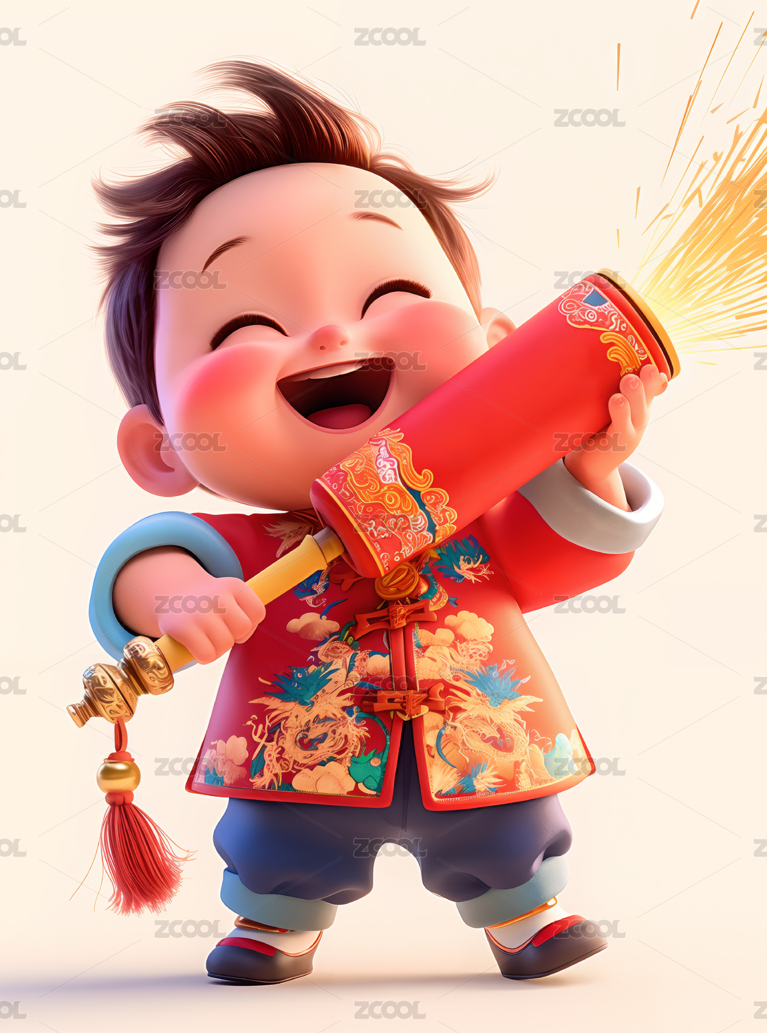 3D插画风迎春节新年的胖嘟嘟可爱卡通娃娃