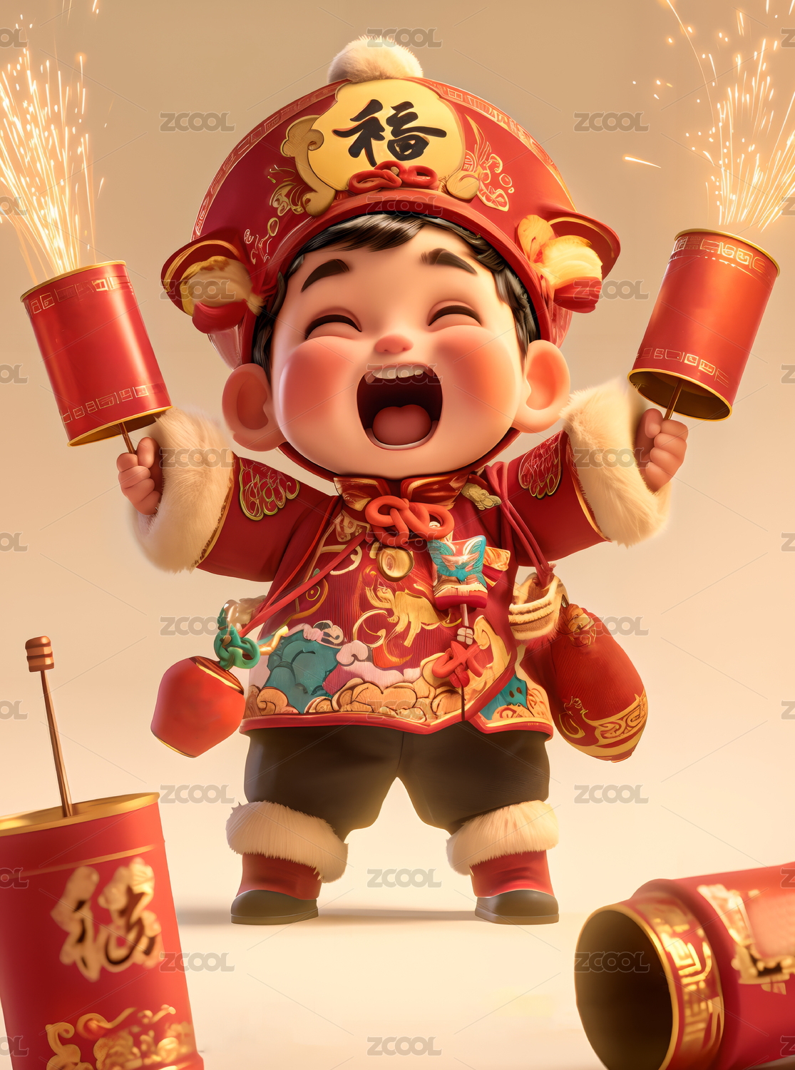 插画,艺术,喜庆,新年,红色,背景,壁纸,娃娃,欢呼,欢庆