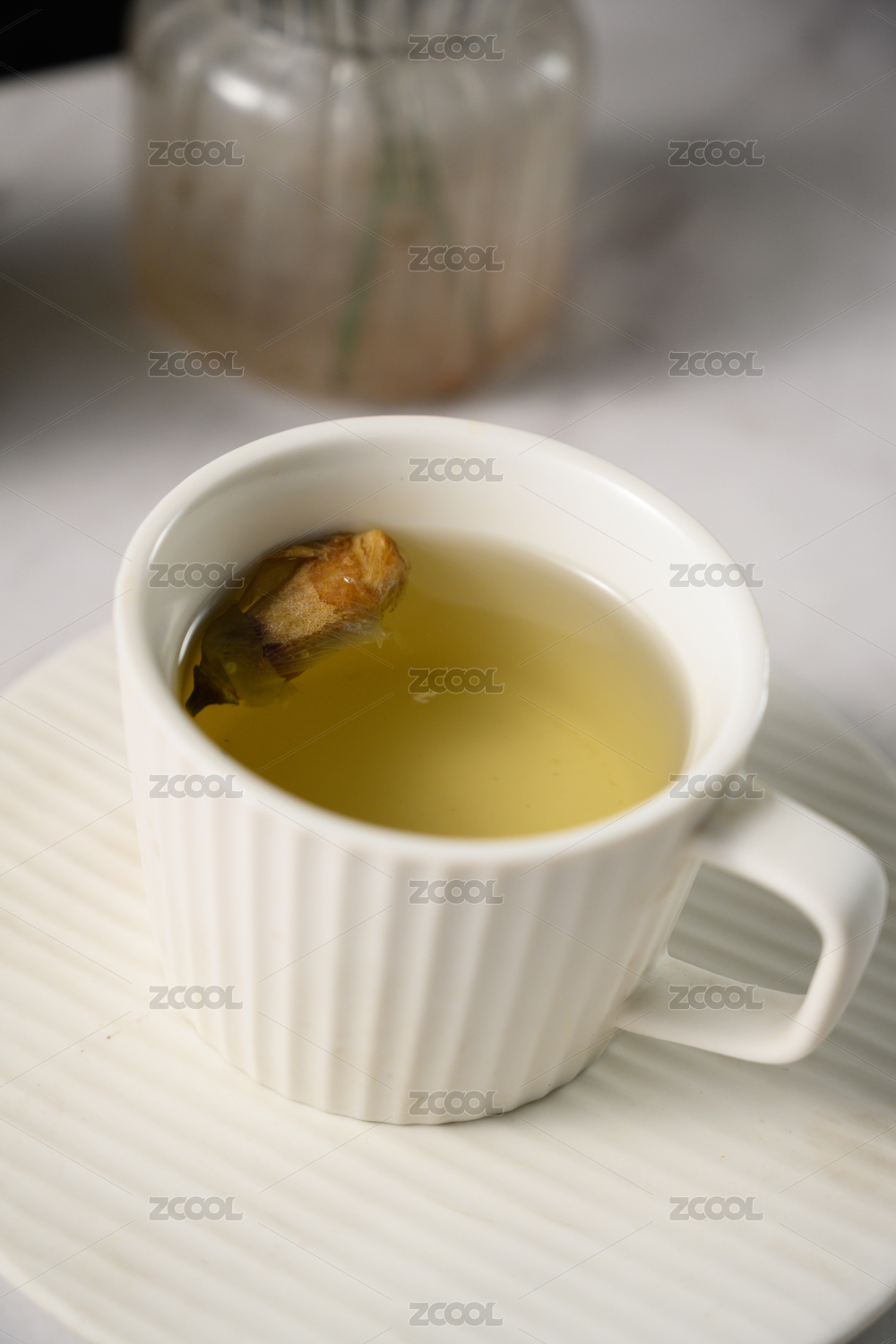 桌面上的杯子里的甘甜可口的夜交藤茶