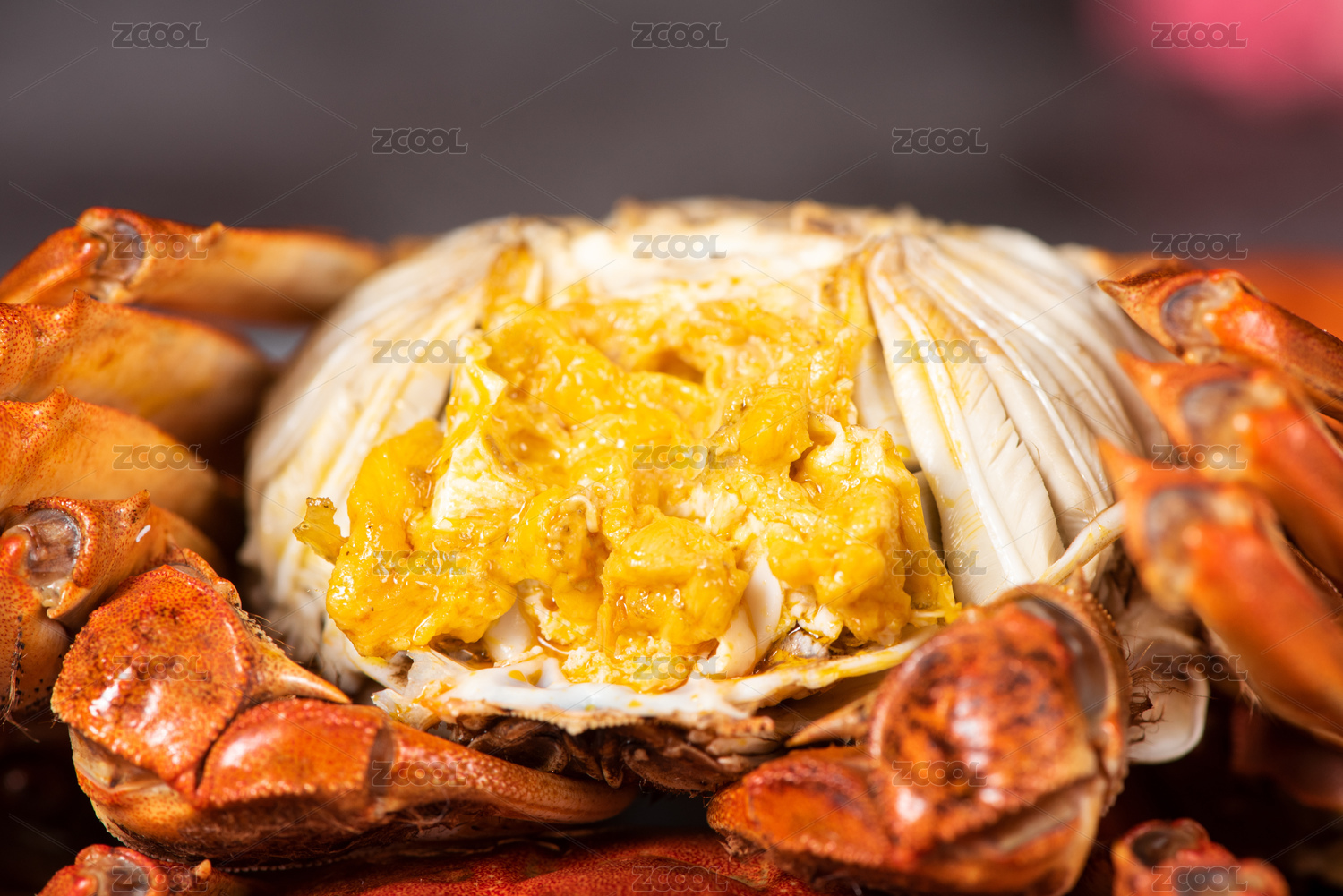 蒸熟剥开的大闸蟹蟹肉蟹黄蟹膏特写