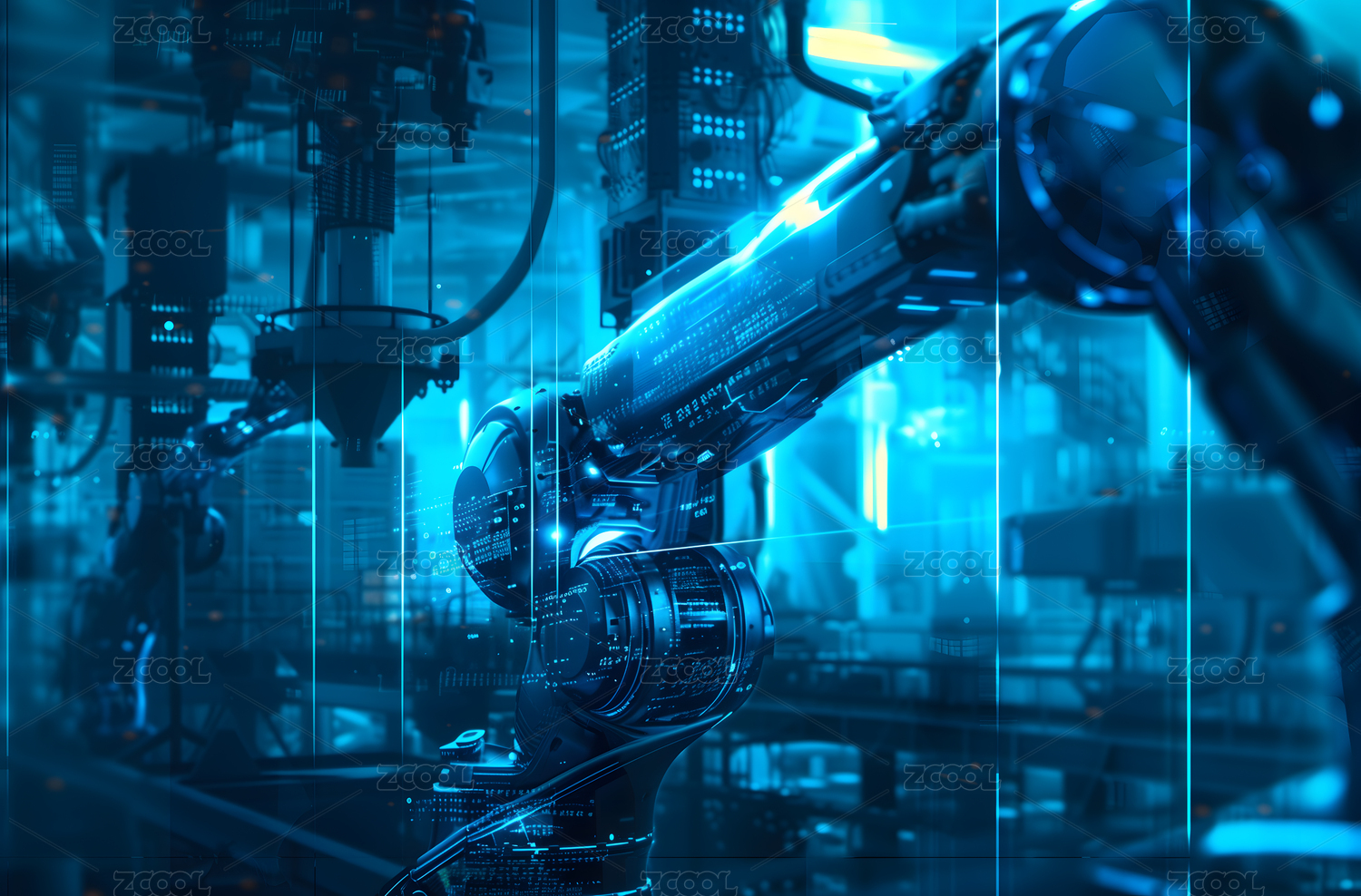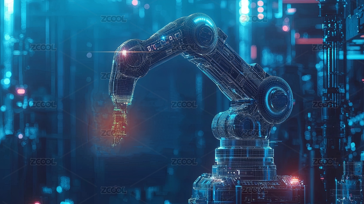 机械臂,科技,工业,产业,人工智能,机械,智造,蓝色,工程,全息影像