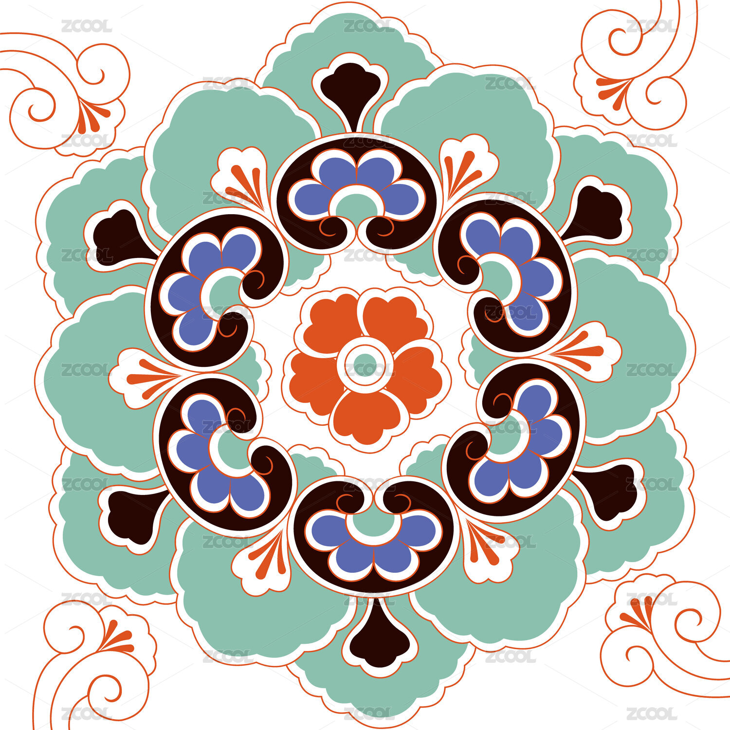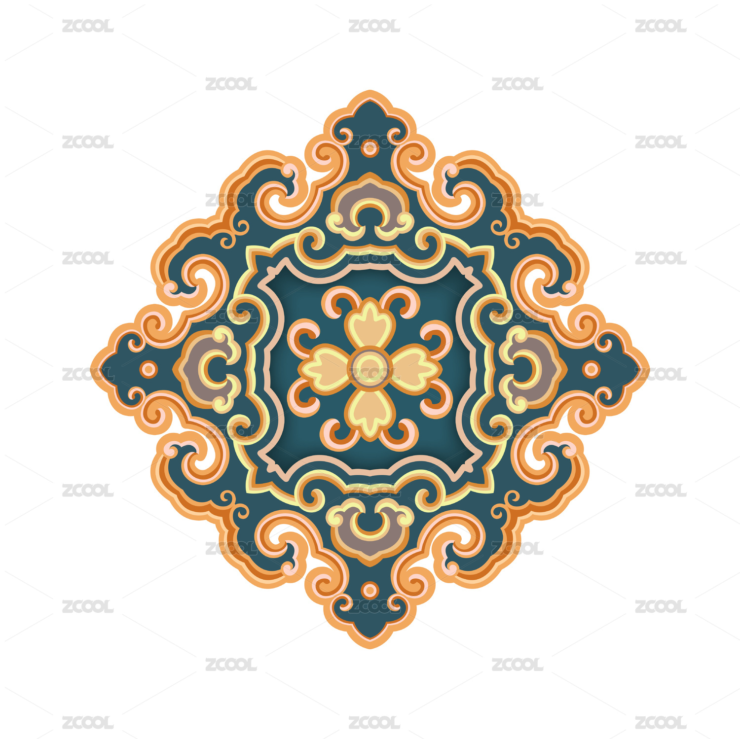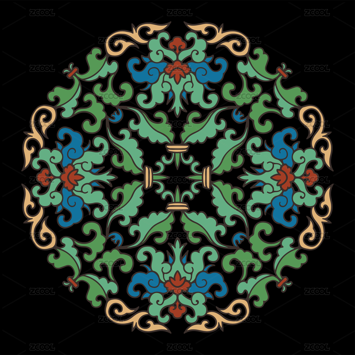 彩色的传统花纹艺术装饰图案