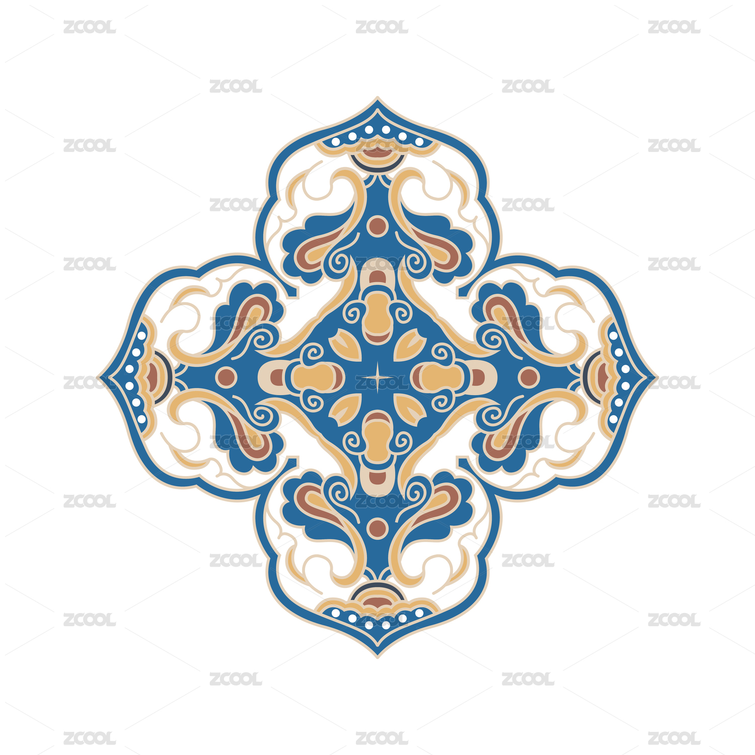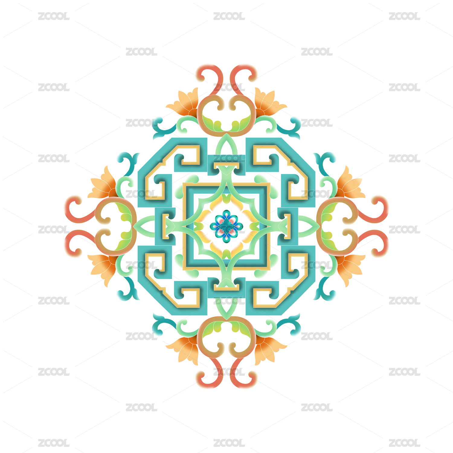 颜色丰富的传统花纹纹样图案,白色背景