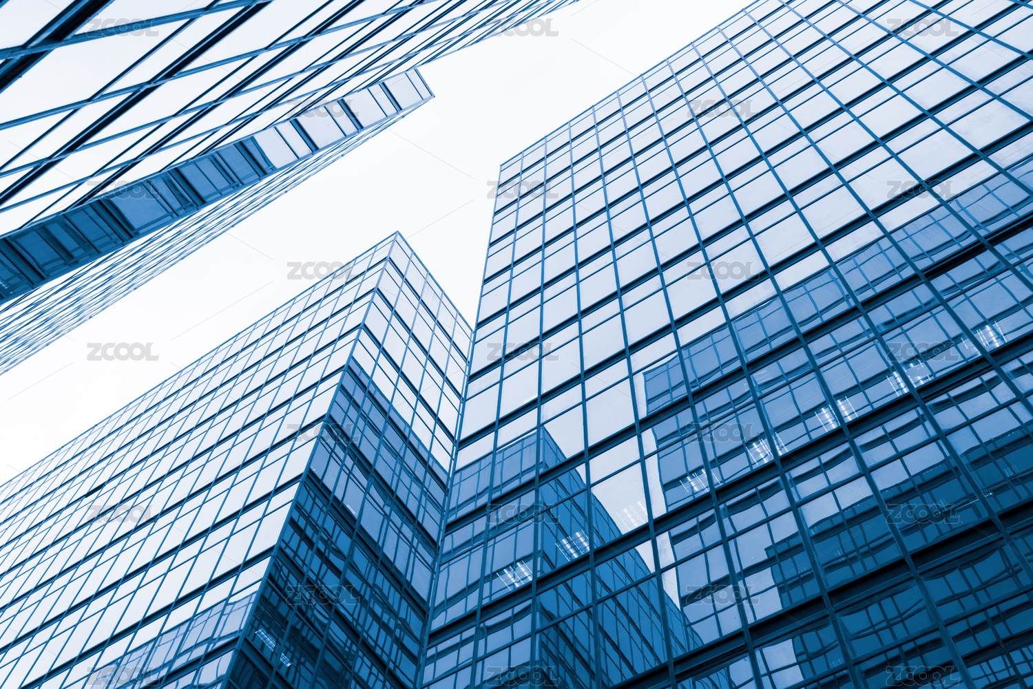 抽象的建筑摩天大楼的蓝色玻璃墙