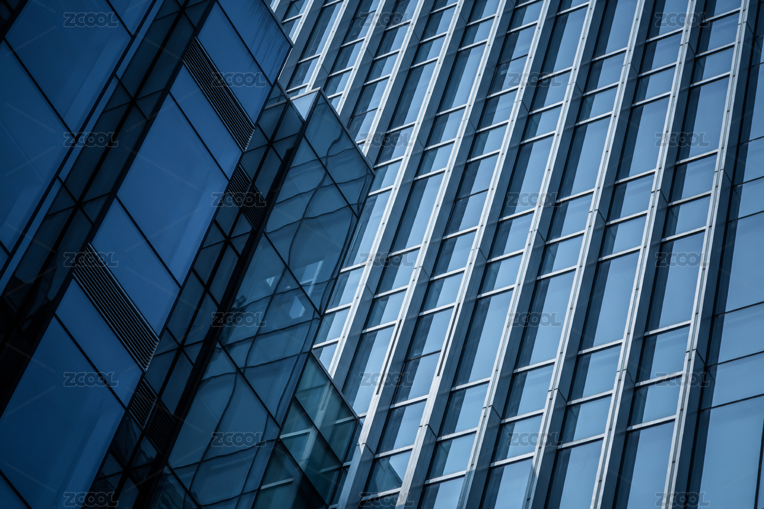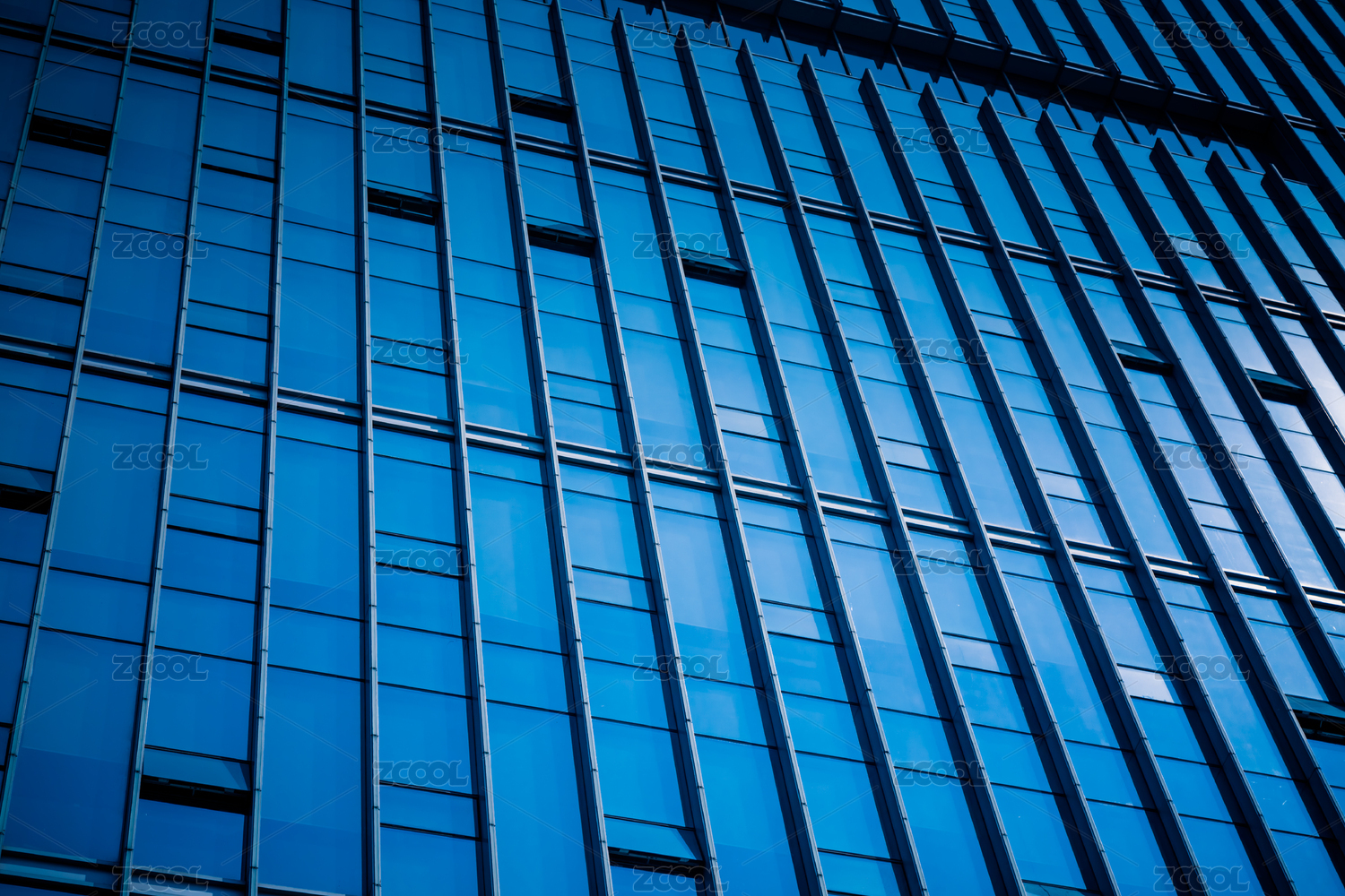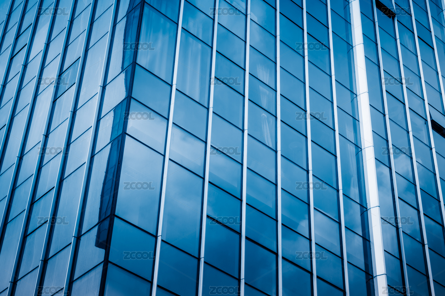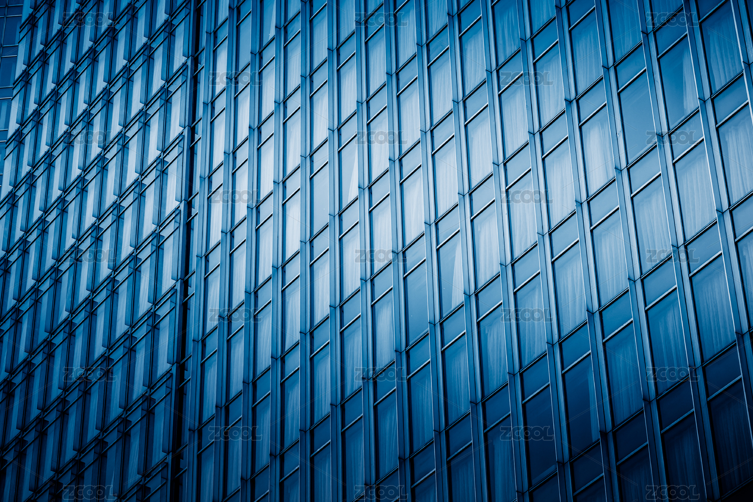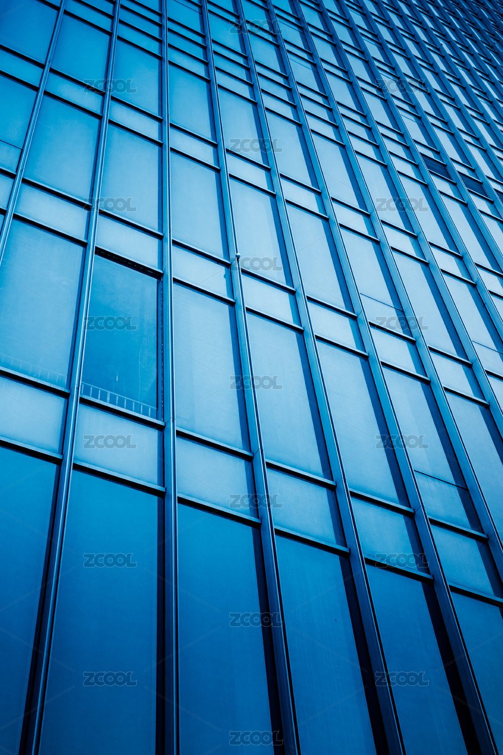 抽象的建筑摩天大楼的蓝色玻璃墙