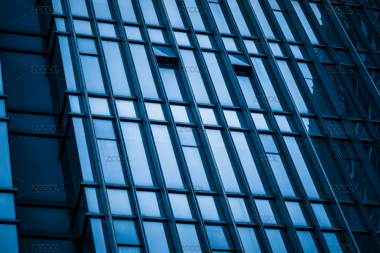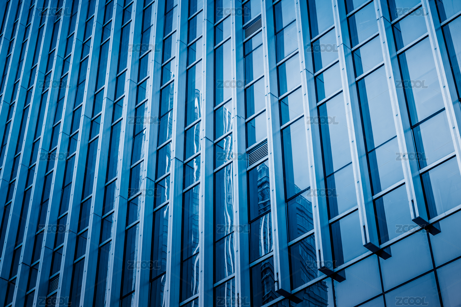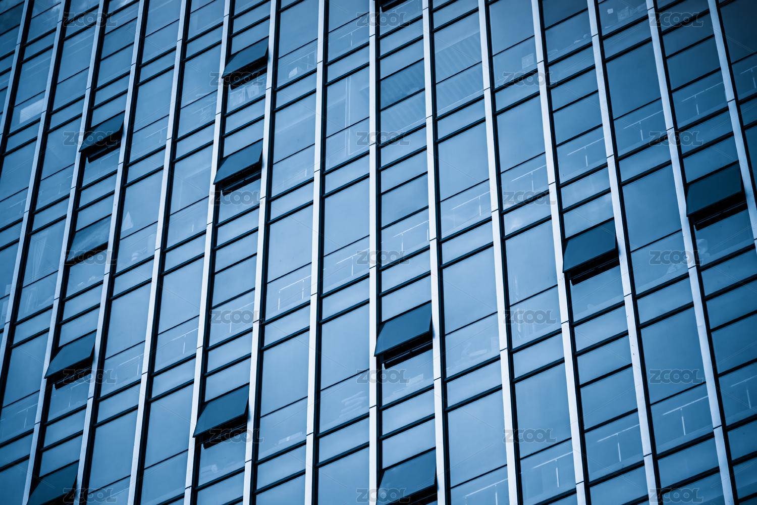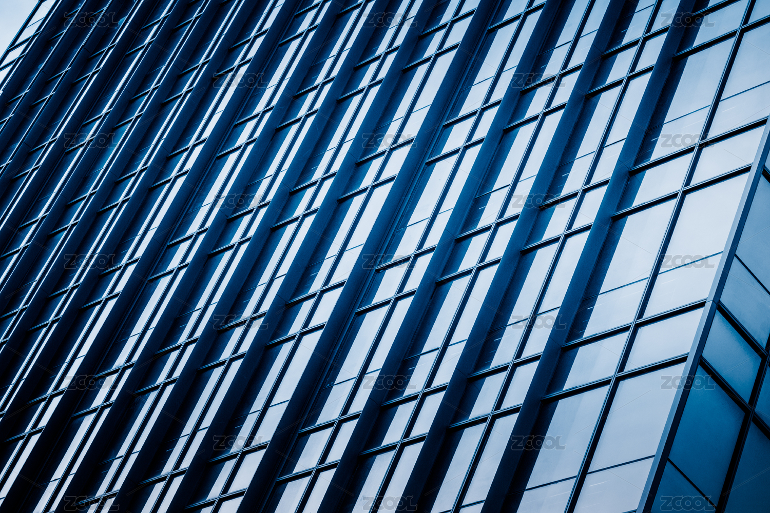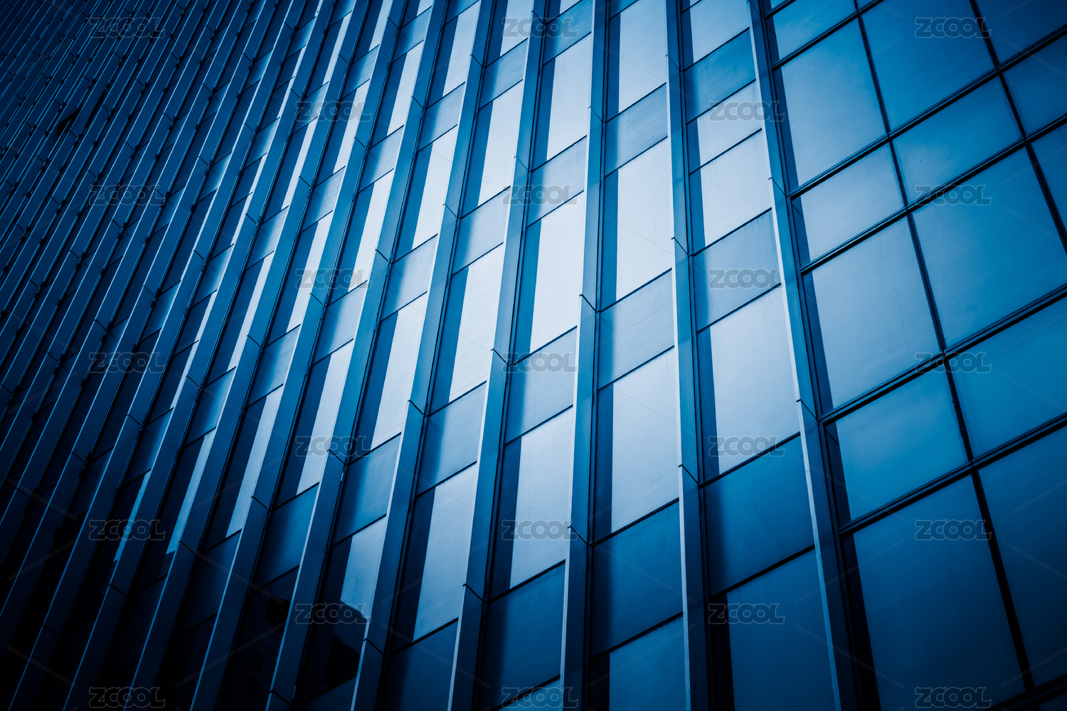 抽象的建筑摩天大楼的蓝色玻璃墙