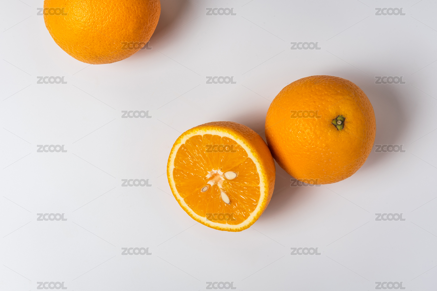 白色背景下棚拍切开的橙子橘子