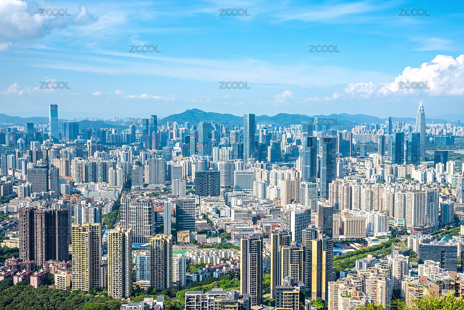 中国广东省深圳福田城市建筑群高楼大厦风光