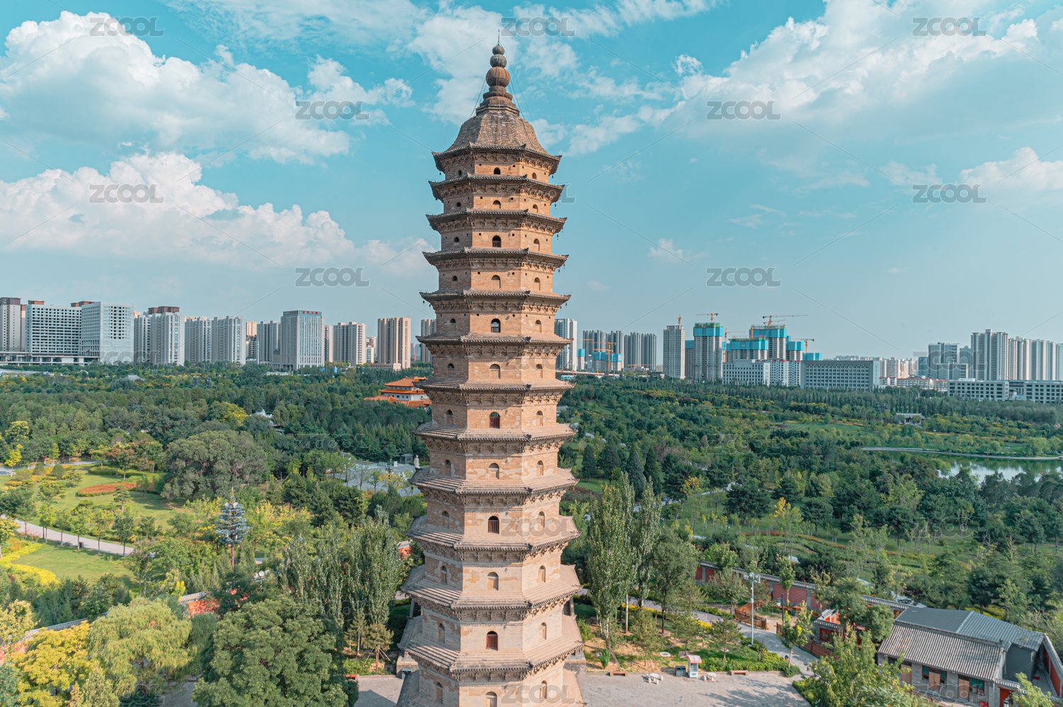 中国山西太原市郝庄双塔寺(永祚寺)风光