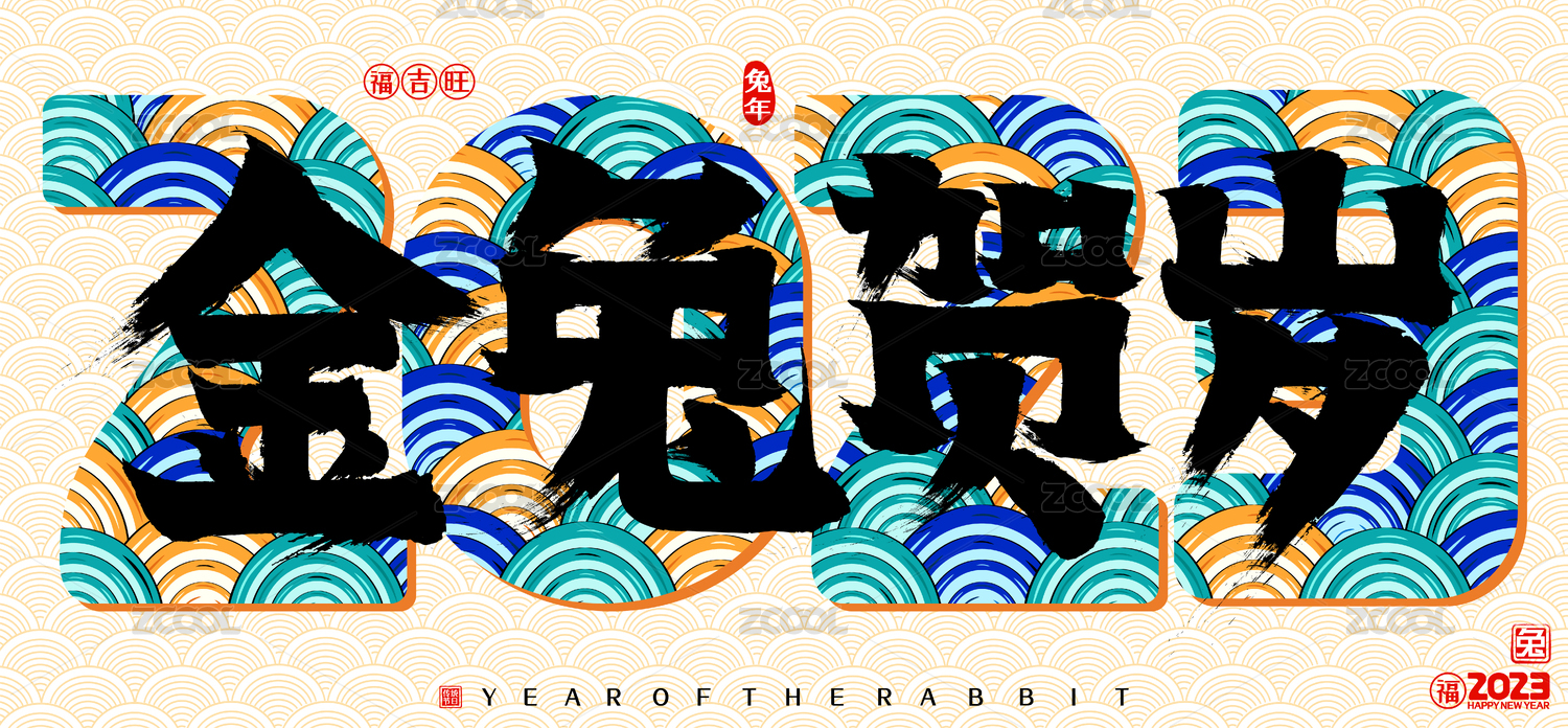 2023兔年金兔贺岁国潮云纹矢量书法字