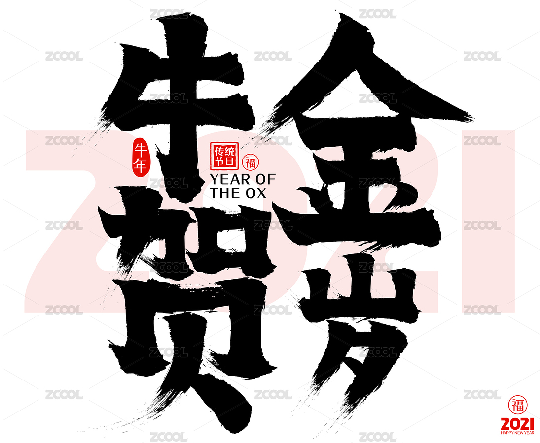 2021金牛贺岁矢量书法字