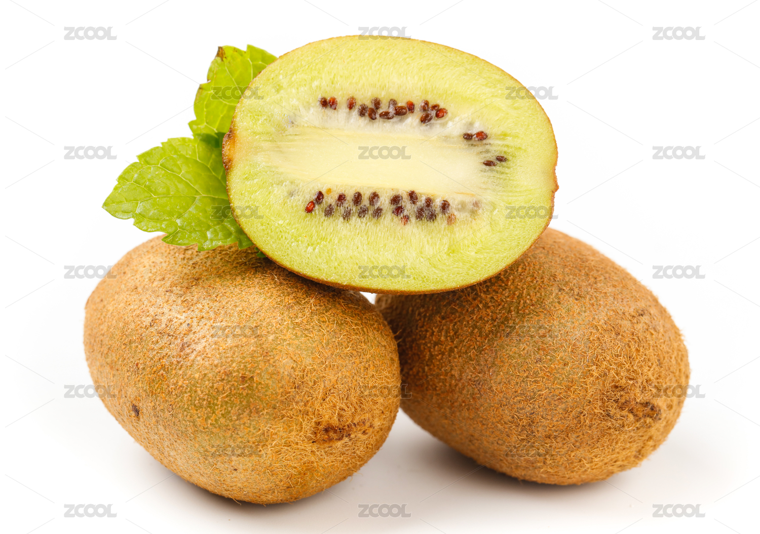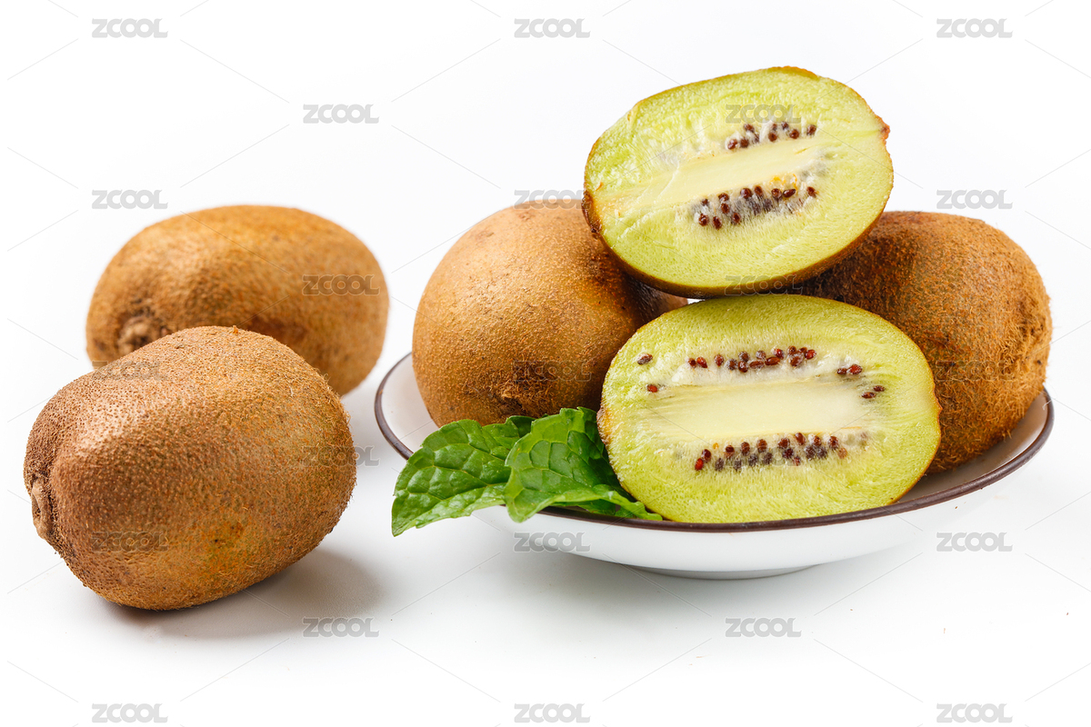 白底上放着黄心猕猴桃