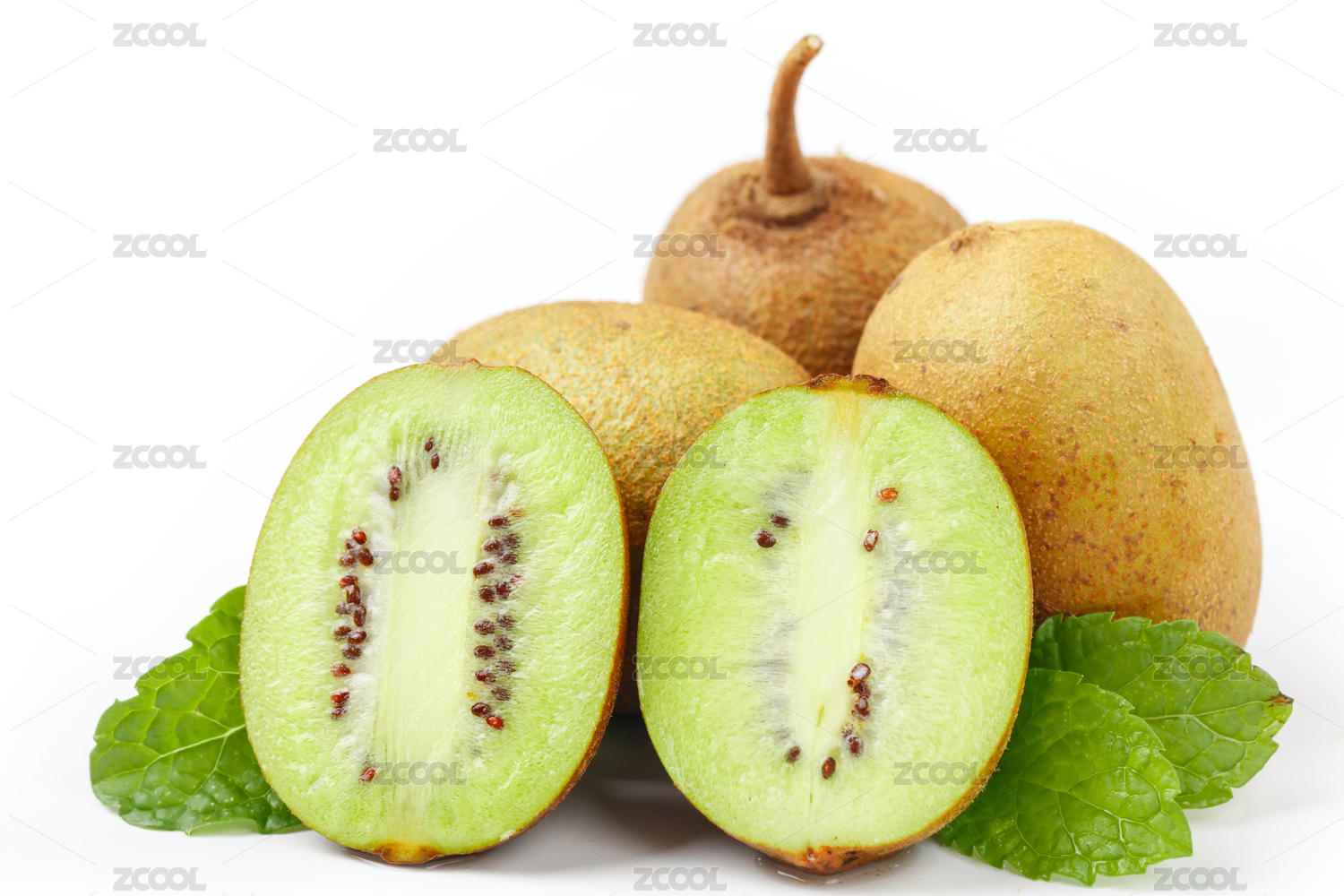 白色背景上摆放的新鲜水果猕猴桃