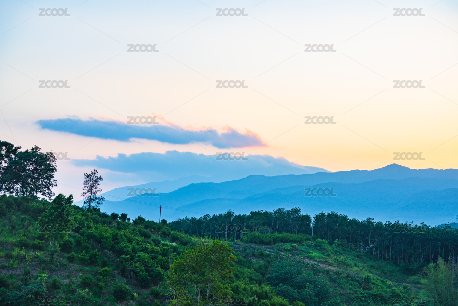 中国香港大帽山郊野公园山顶日出山脉风光