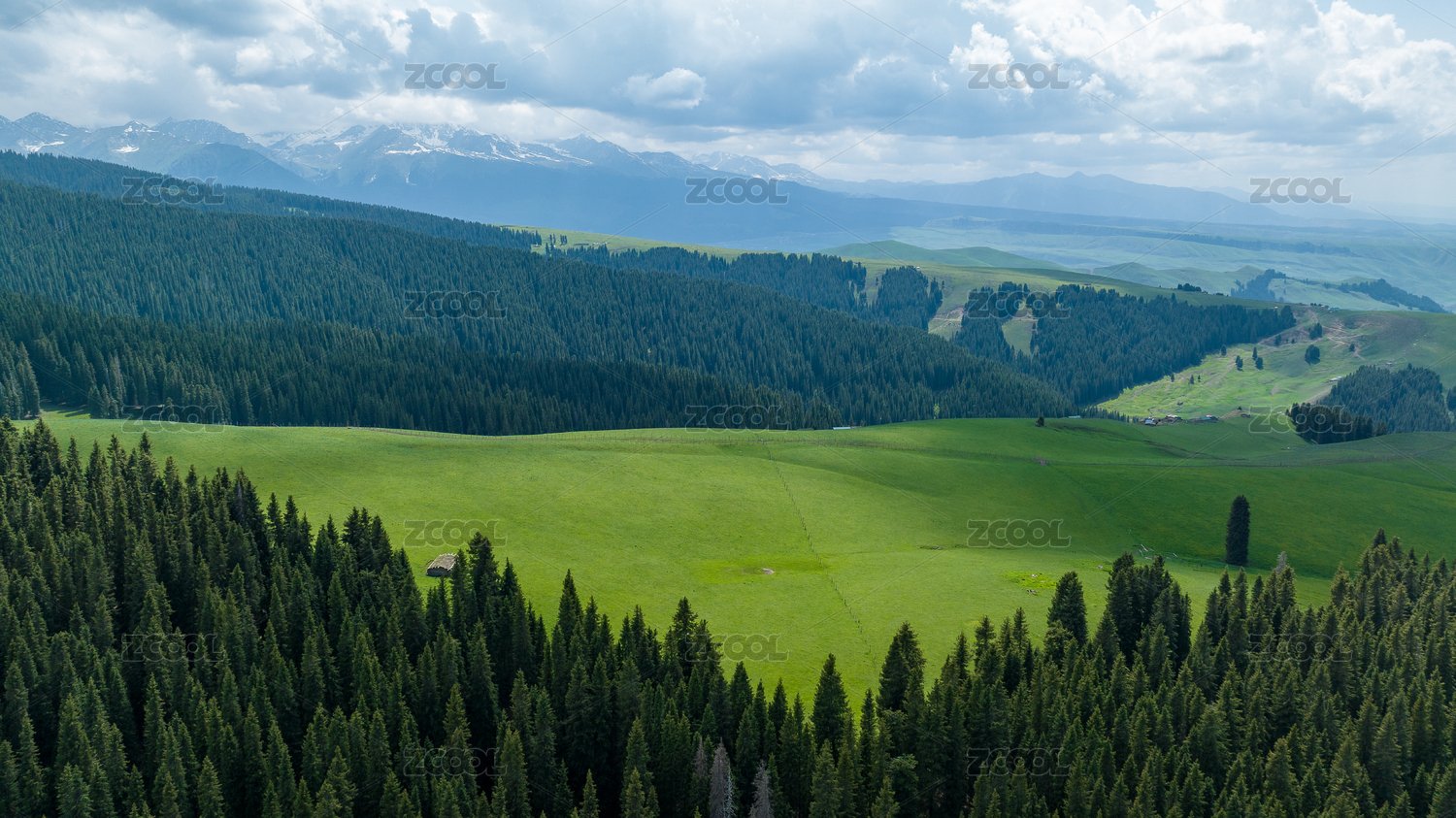 中国新疆伊犁特克斯琼库什台雪山森林草原
