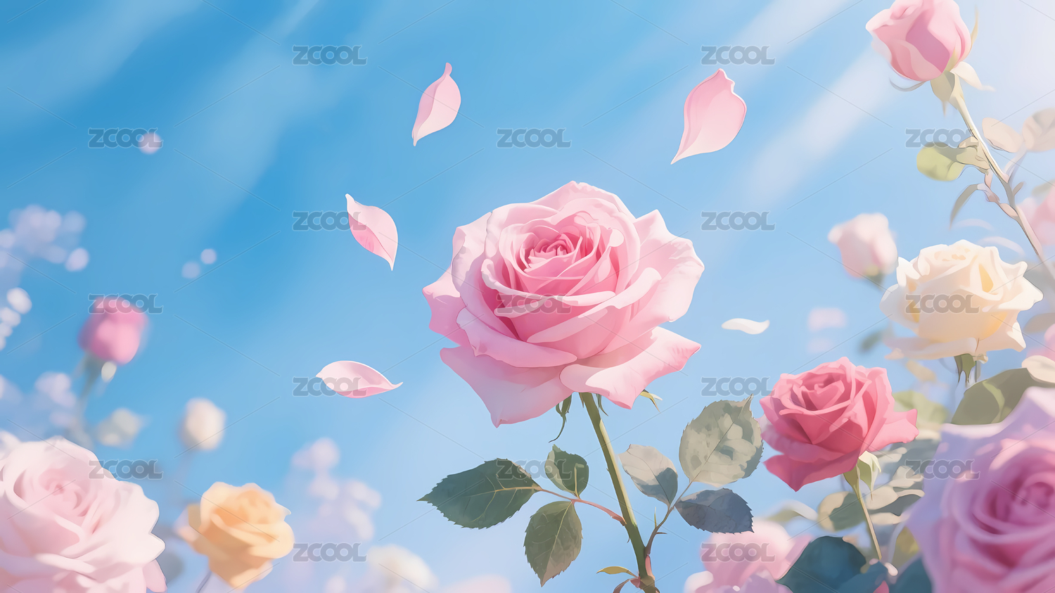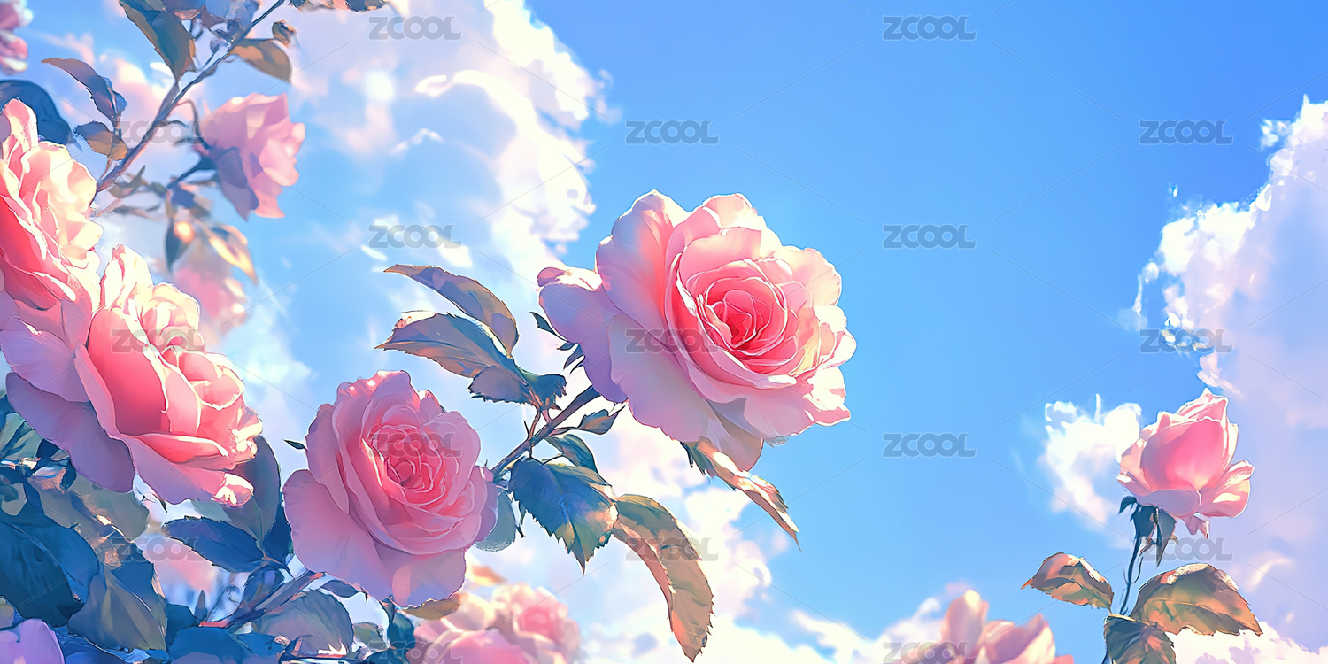 梦幻蓝天粉色玫瑰