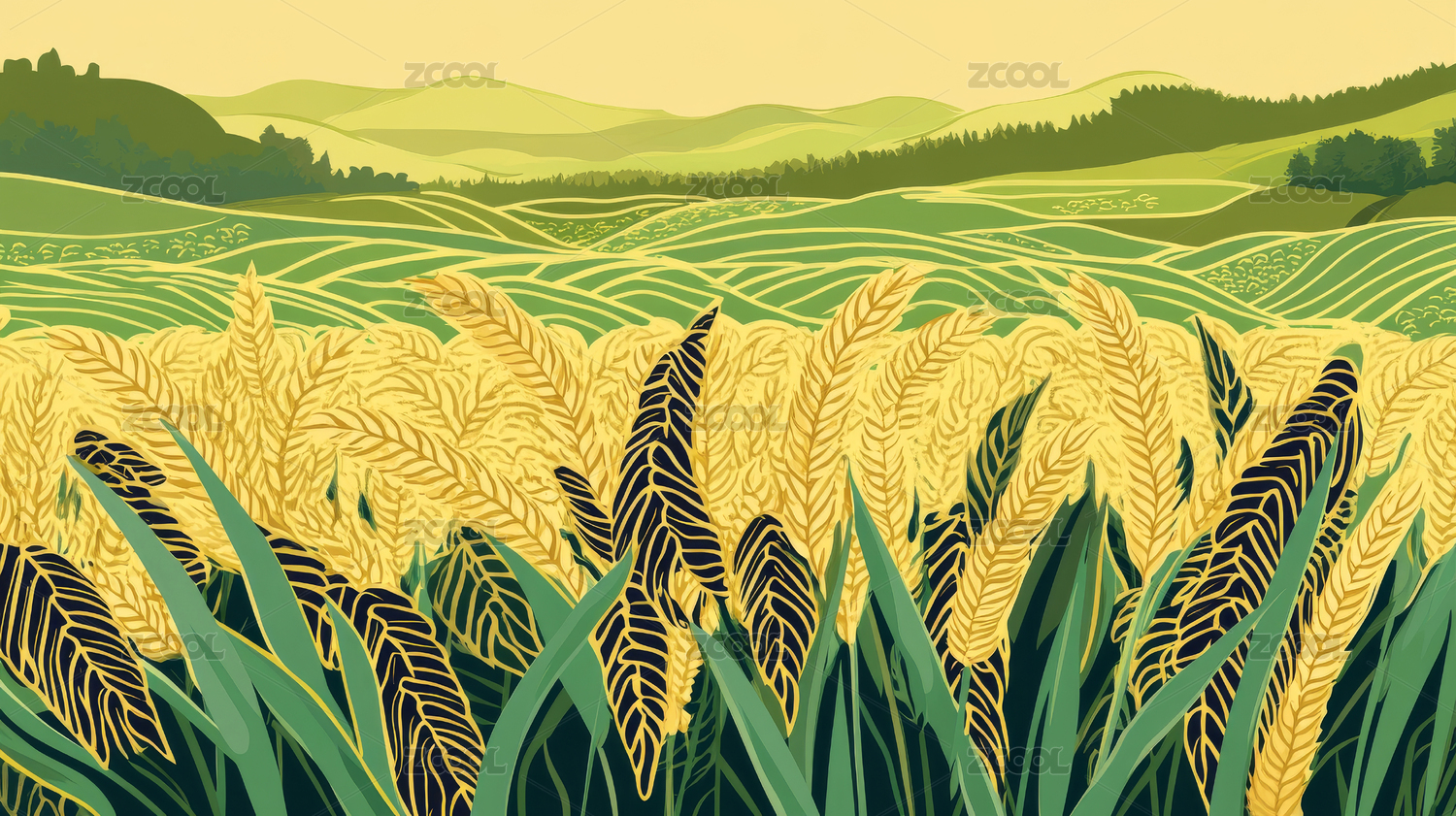 插画,卡通,食物,成熟,大米,稻穗,稻子,谷物,谷子,粮食