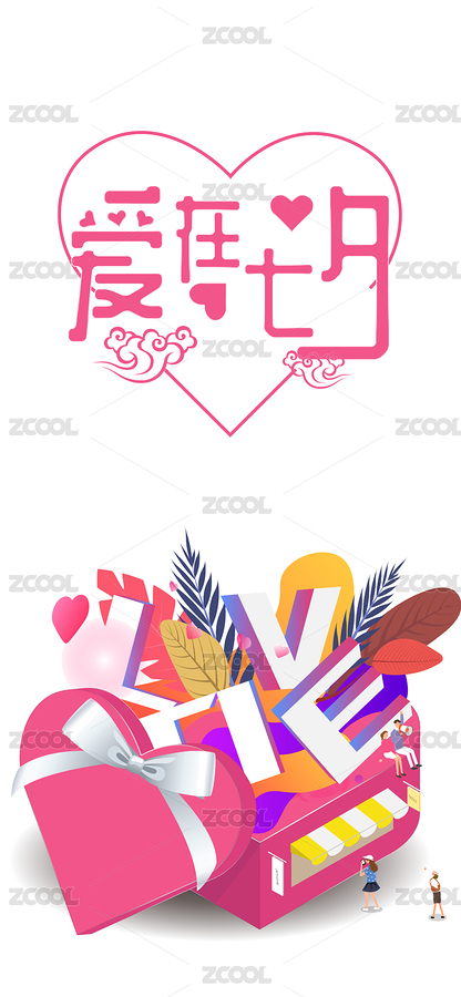 七夕,爱在七夕,心形,祥云,love,礼盒,商店,蝴蝶结,丝带,绿叶