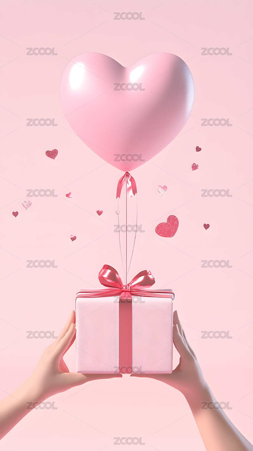 手托着红色礼盒3d爱心活动渲染渐变背景