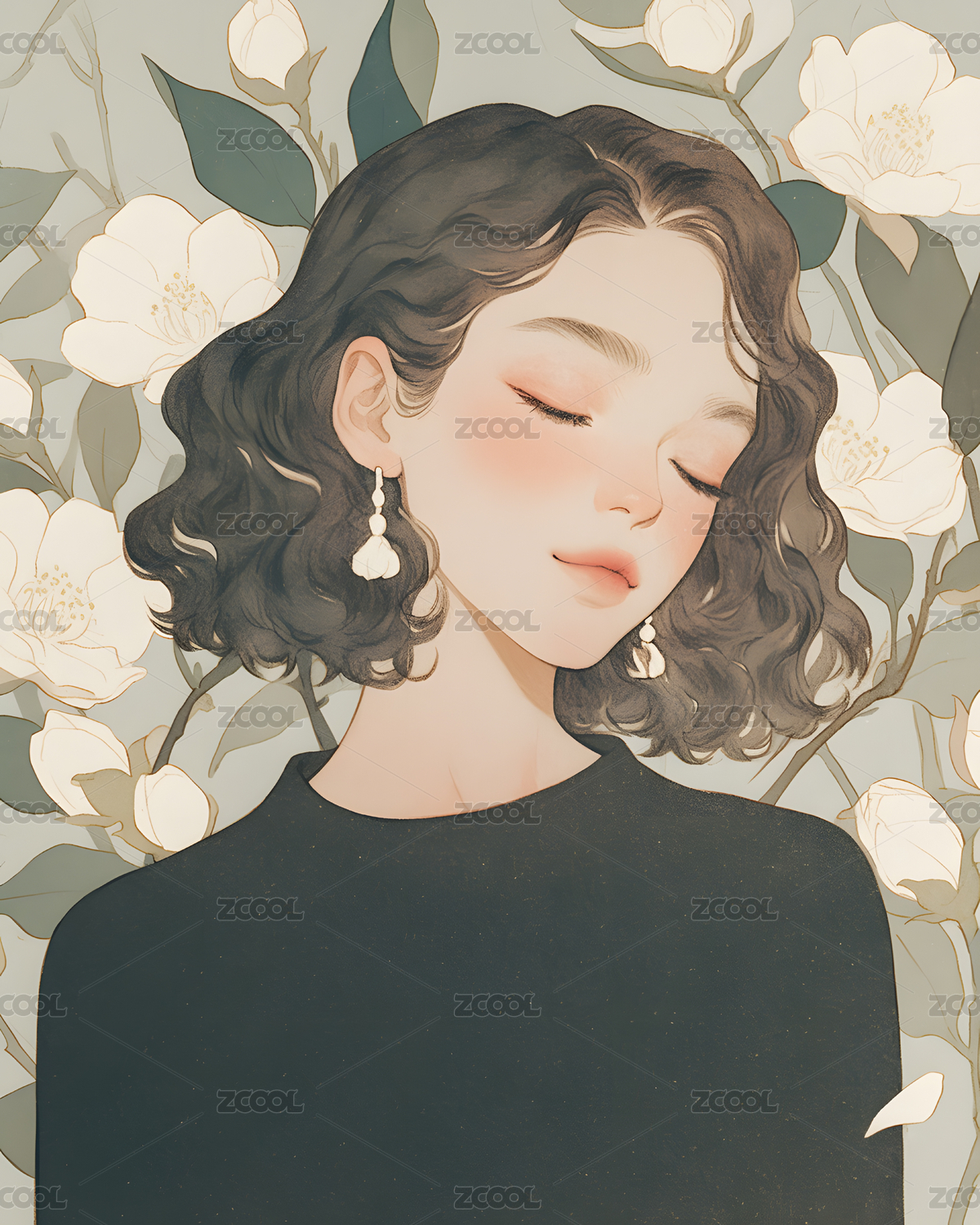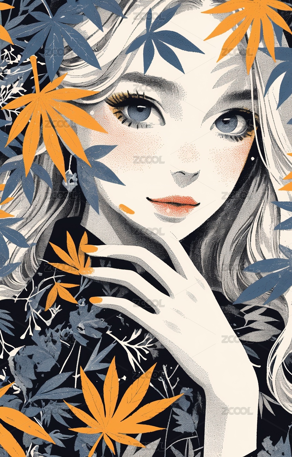 优雅,气质,艺术,珠宝,美人,蓝发,少女,肖像画,梦幻,项链