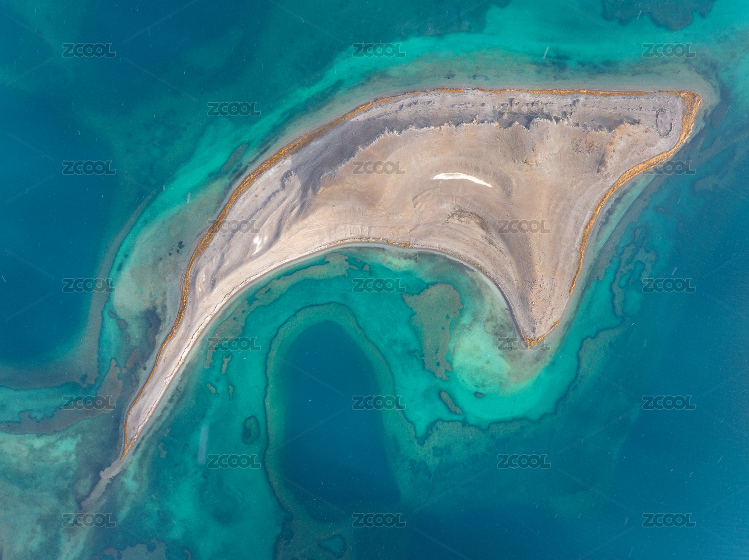 航拍中国西藏阿里班公湖鲨鱼岛