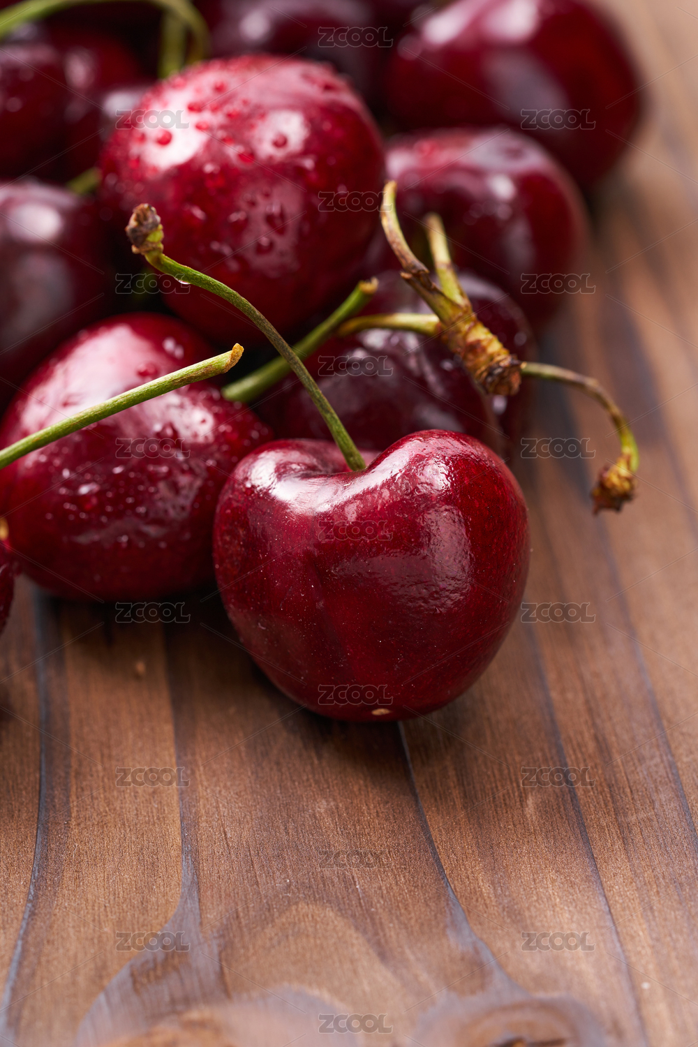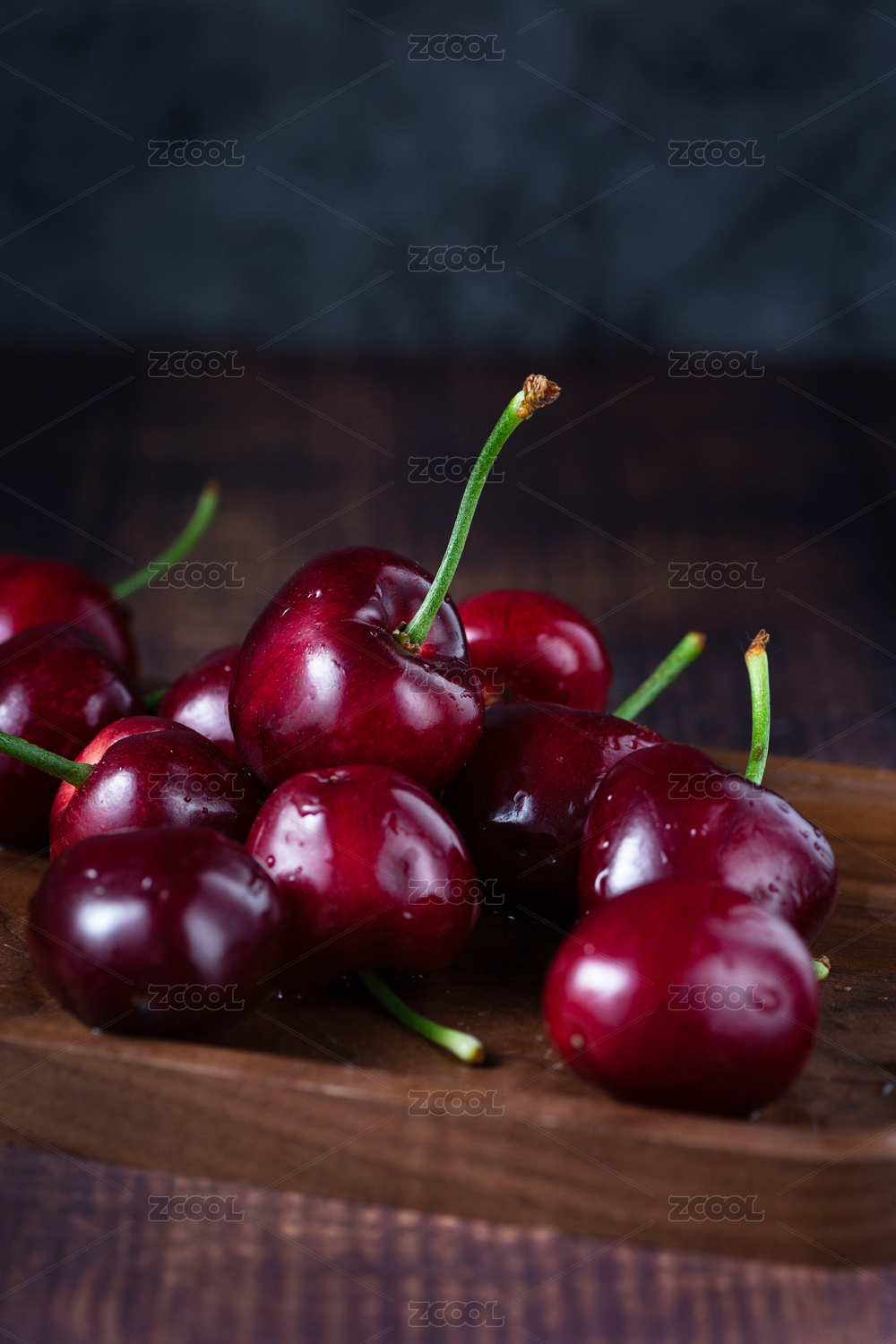 木纹盘上的大樱桃