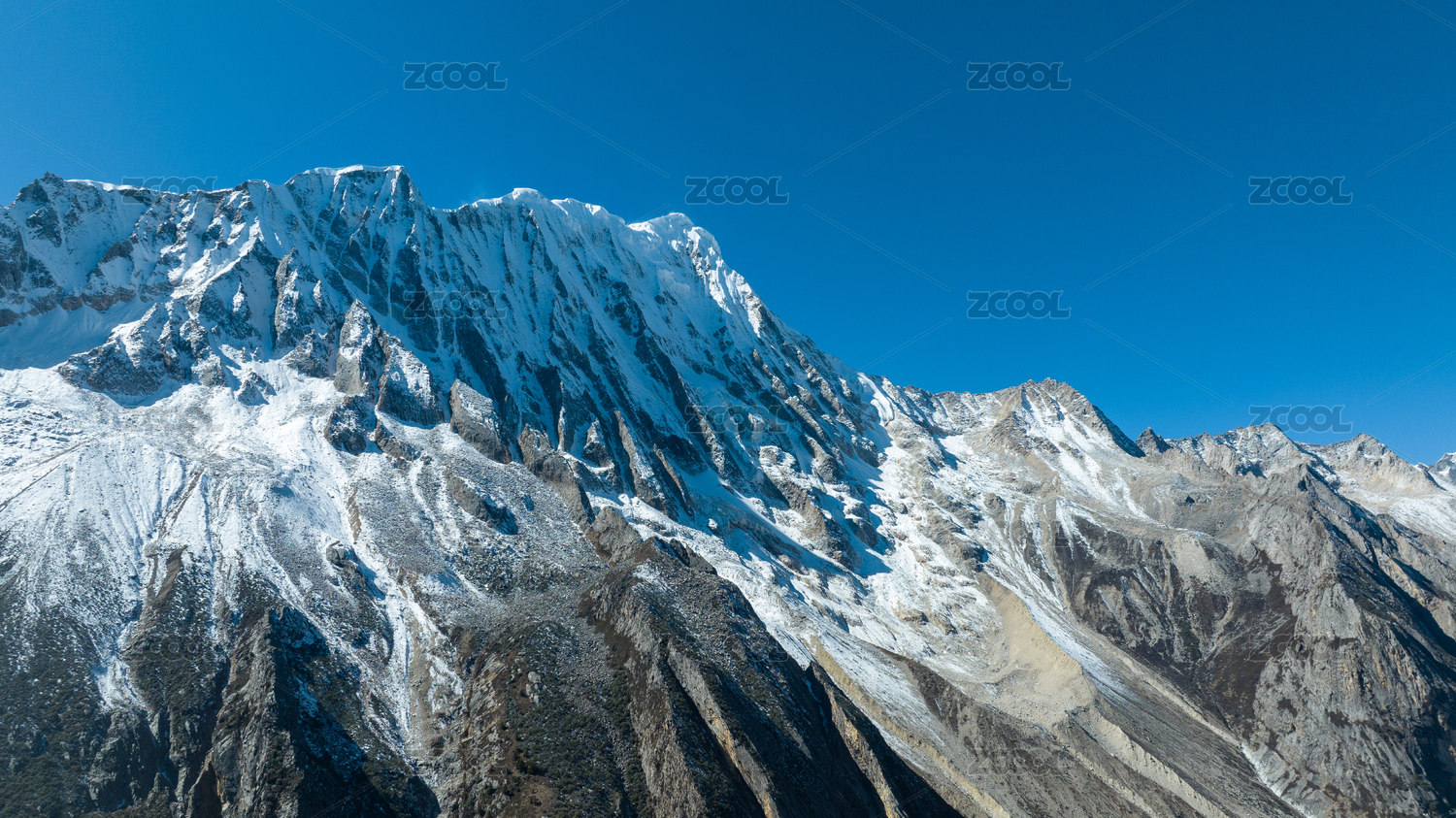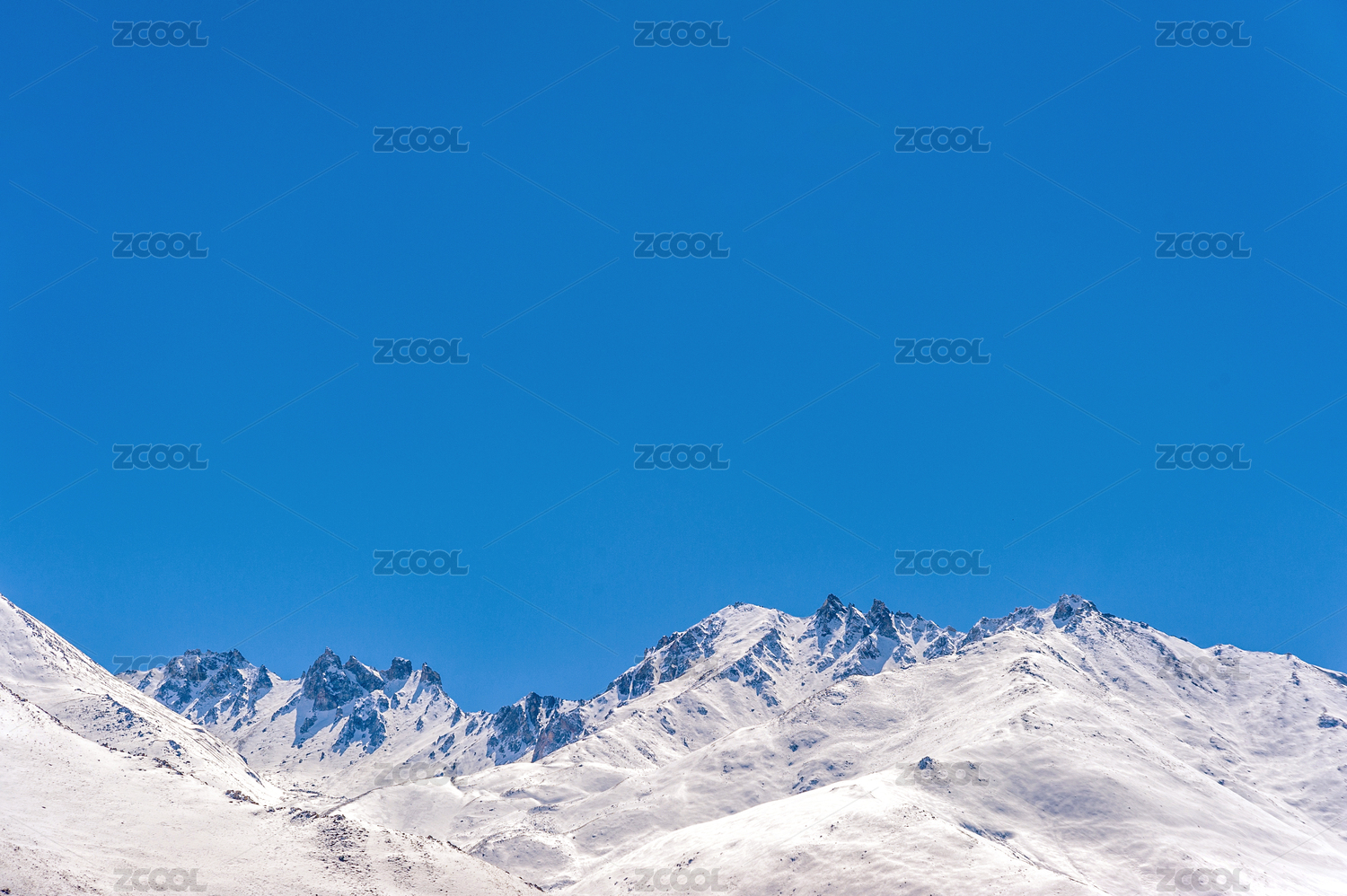 蓝天为背景的雪山风光