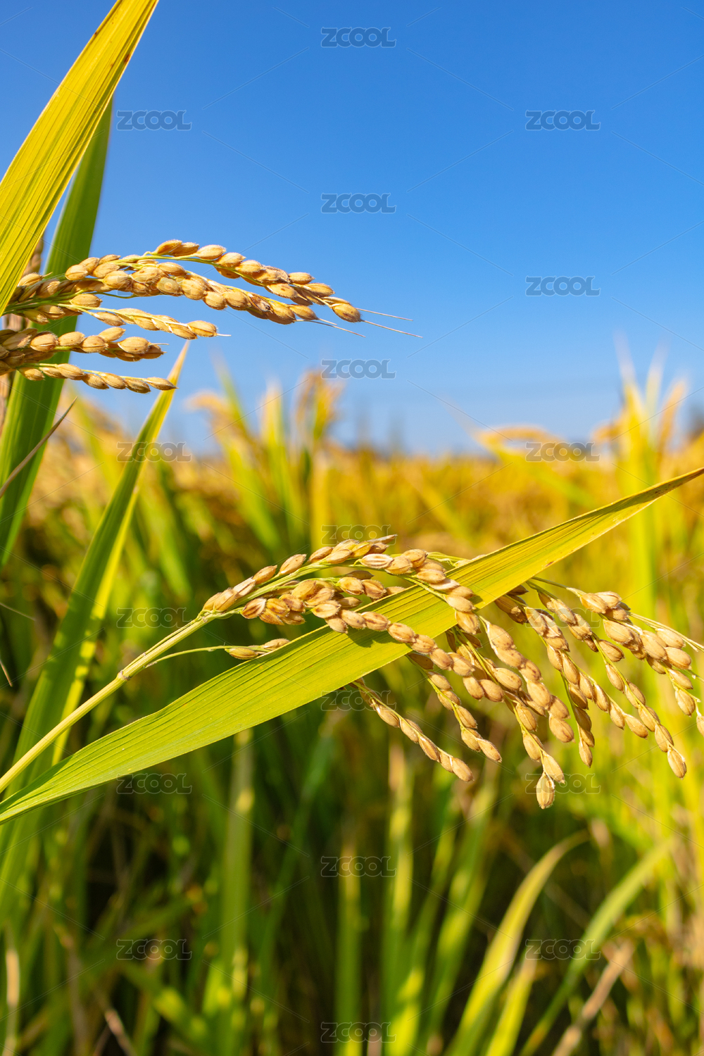 丰收季节晴朗天空下饱满成熟的金黄色的稻谷