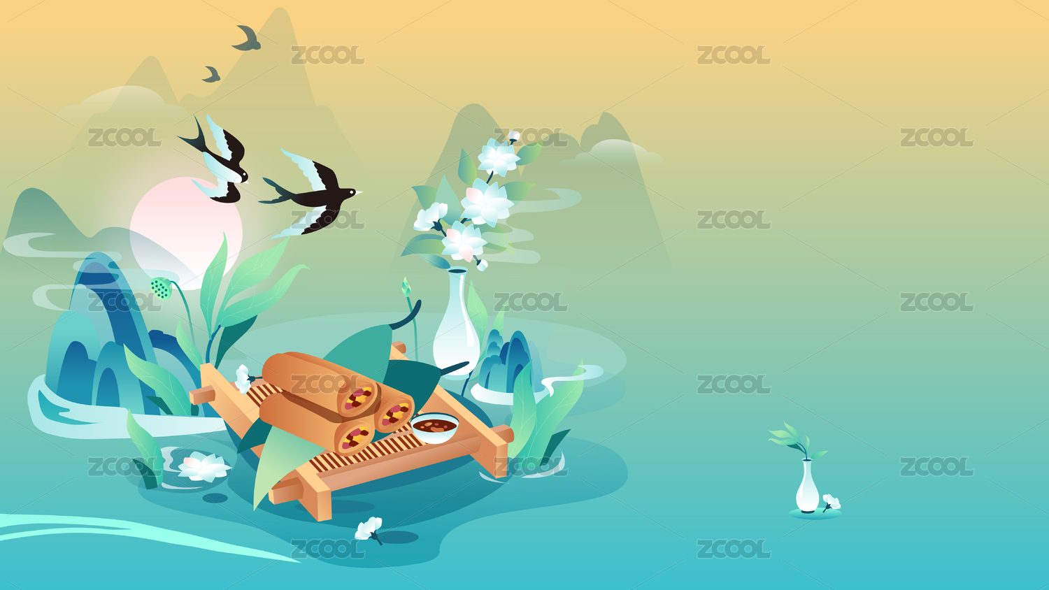 国风立春意境节气山水传统春季春卷美食