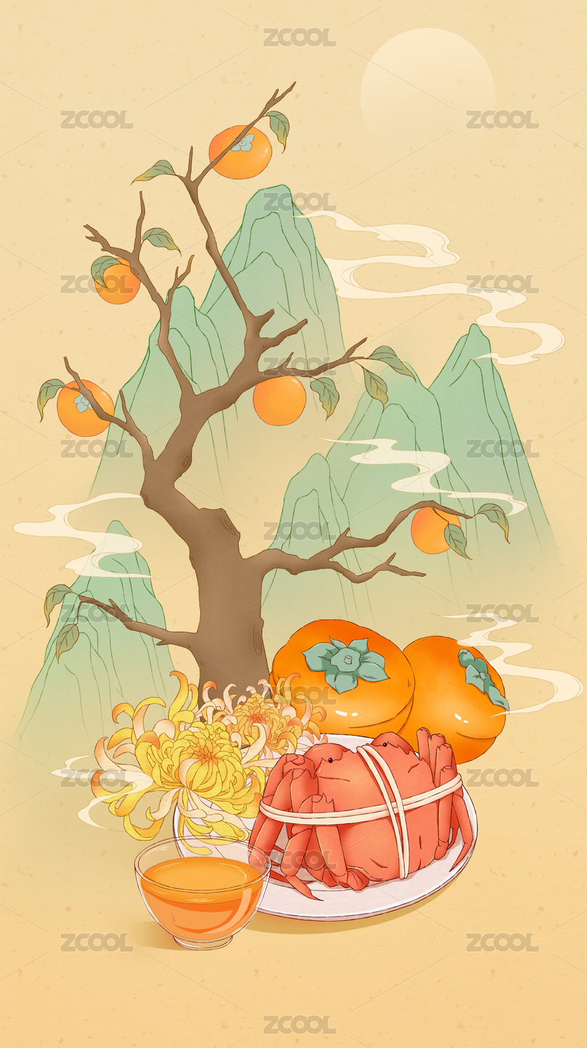 国庆节重阳节赏菊螃蟹寒露霜降节气酒中国风