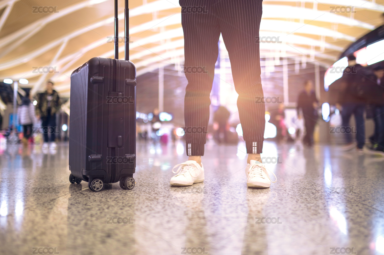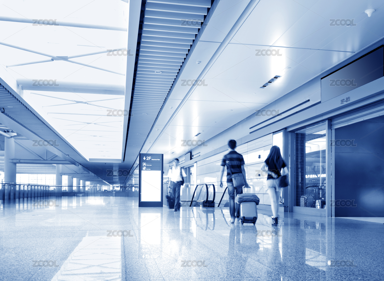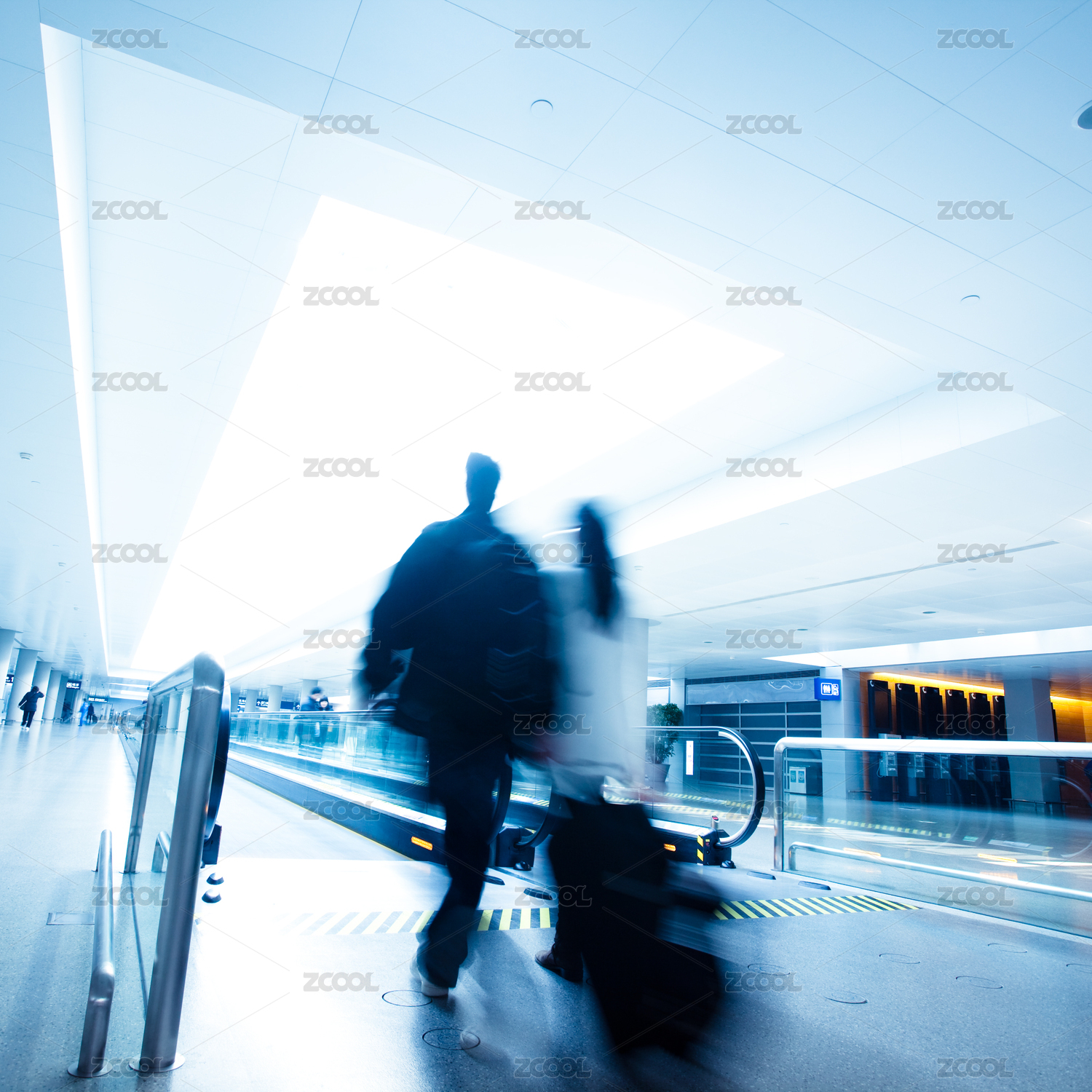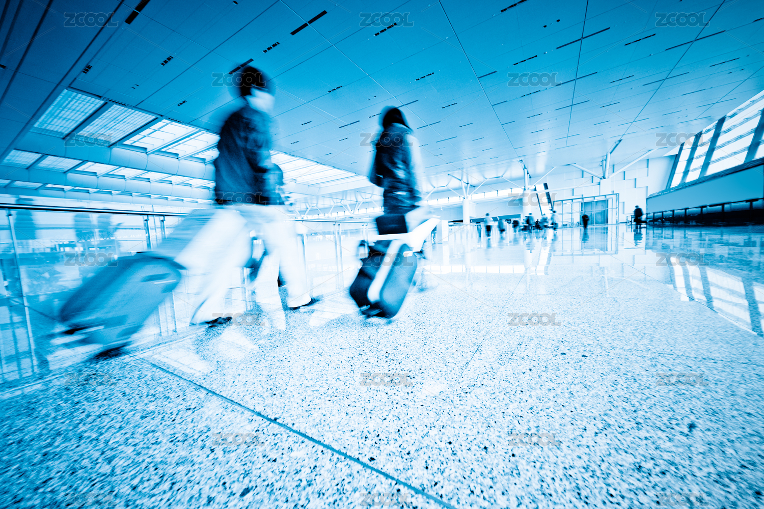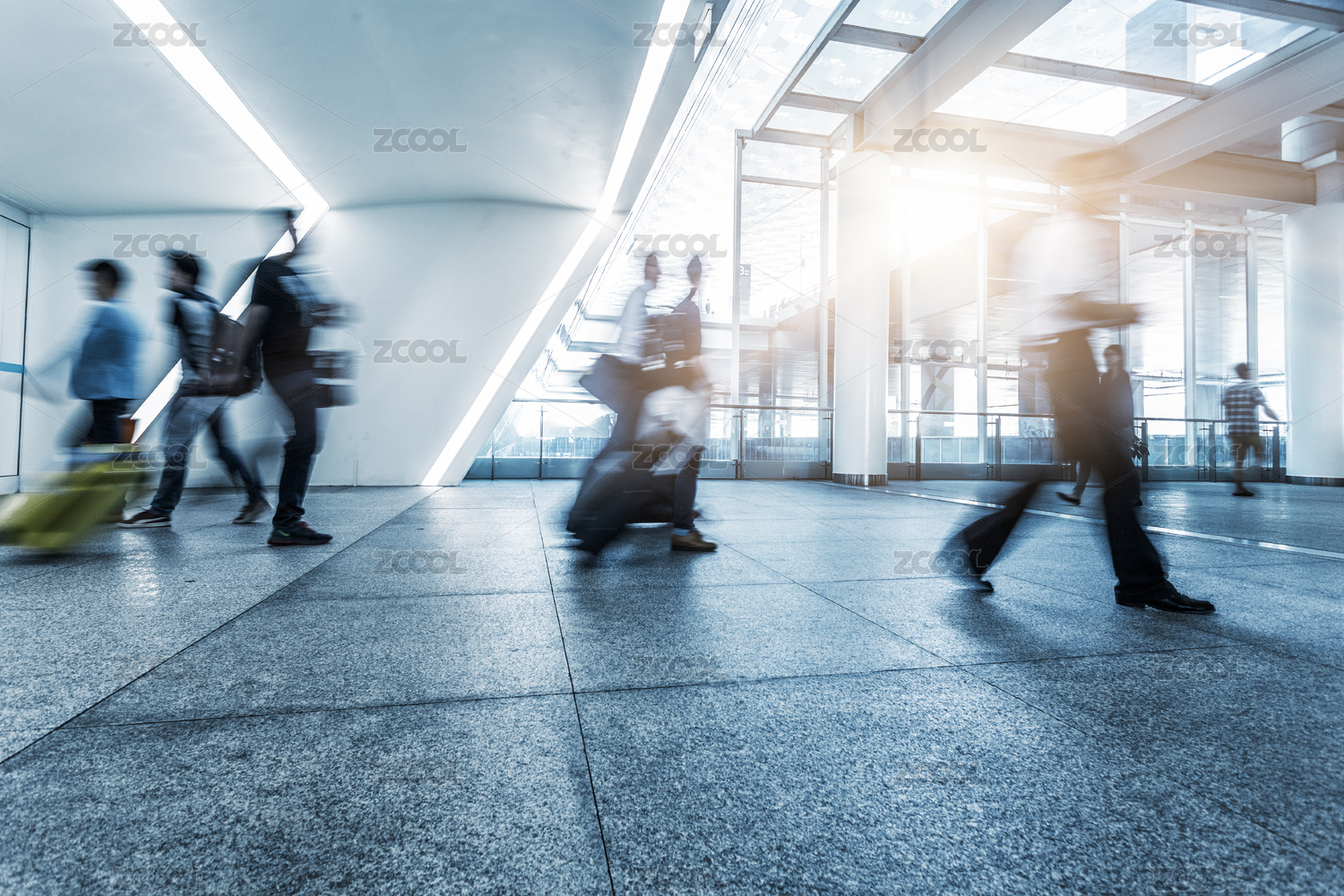 上海浦东机场航站楼内部,动感模糊的乘客。