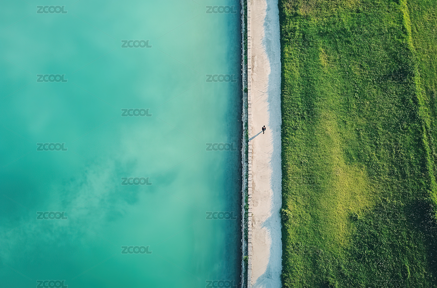 春天绿草地和碧水沙滩背景