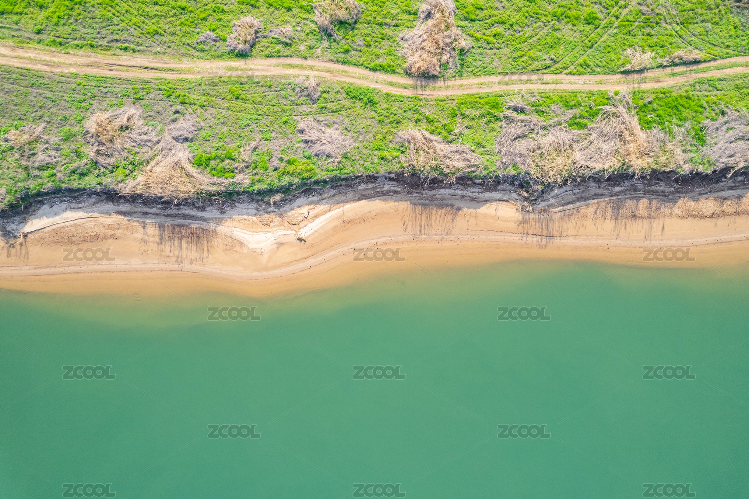 俯视湿地公园内的河流与水草