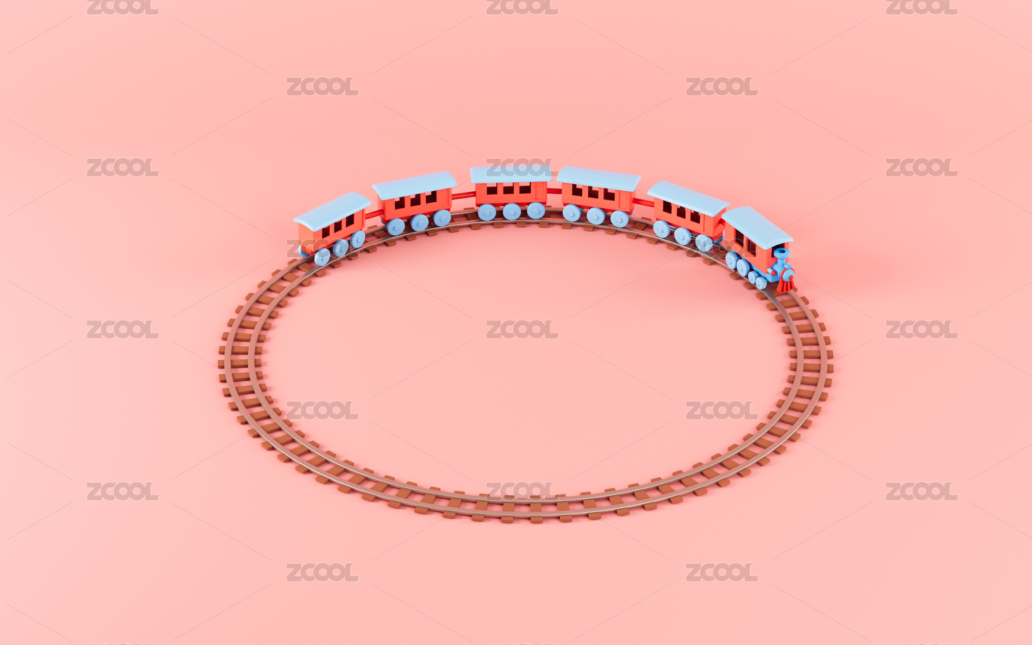 3D,插画,背景,卡通,交通,工业,旅游,旅行,火车,移动