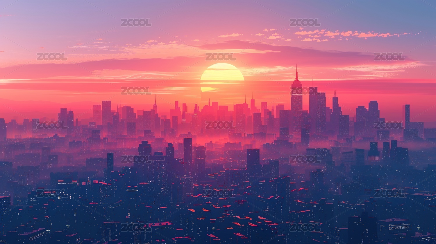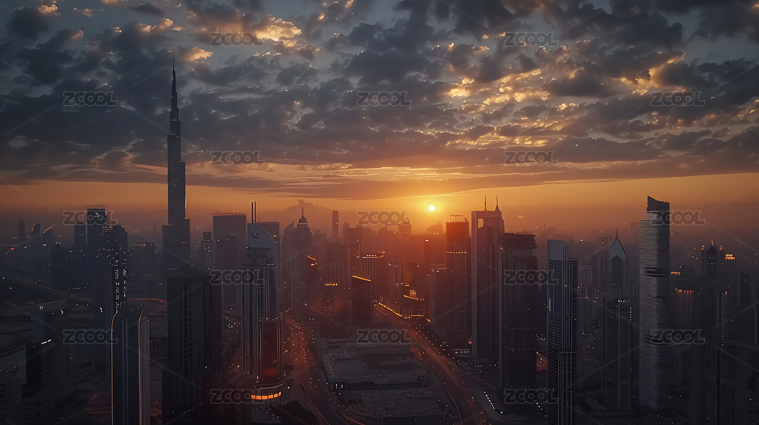 黄昏城市天际线