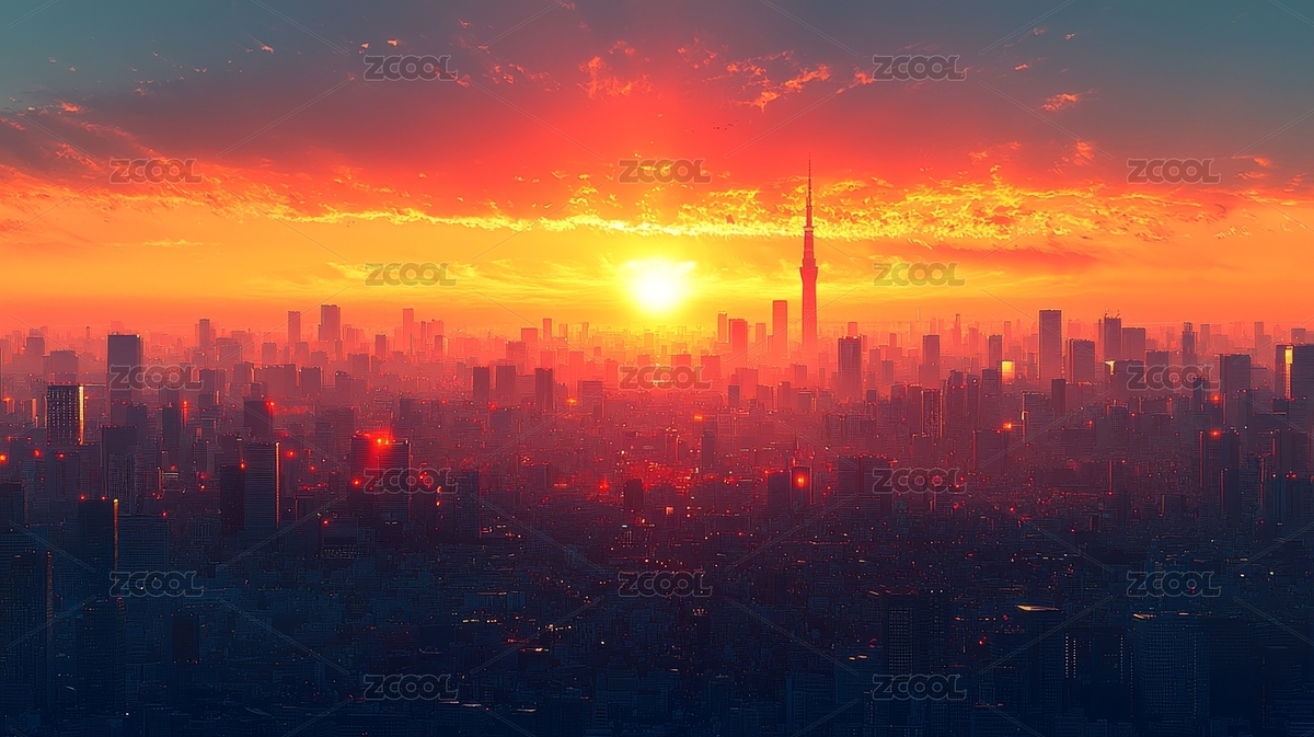 日出城市景观