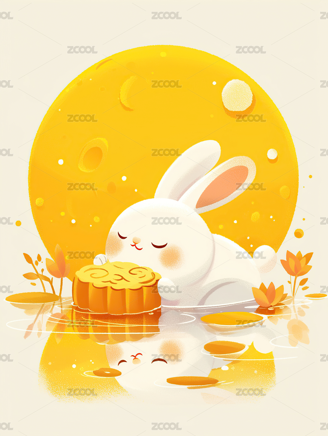 玉兔,月亮,月饼,兔子,兔,插画,背景,卡通,扁平,节日