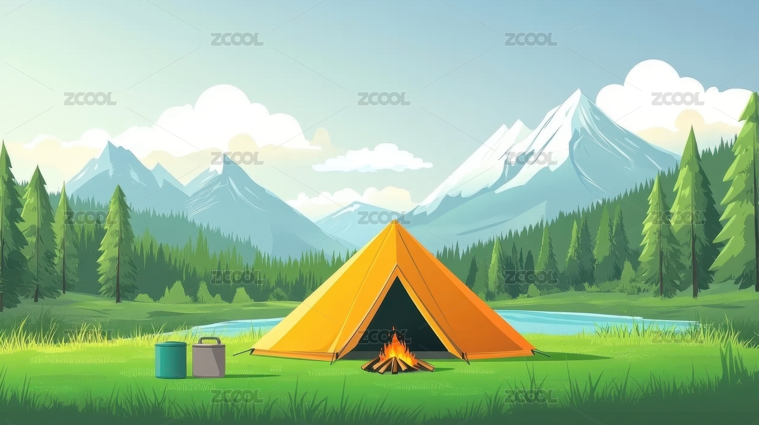 背景图,背景,插图,户外,露营,卡通,漫画,插画,秋天,扁平