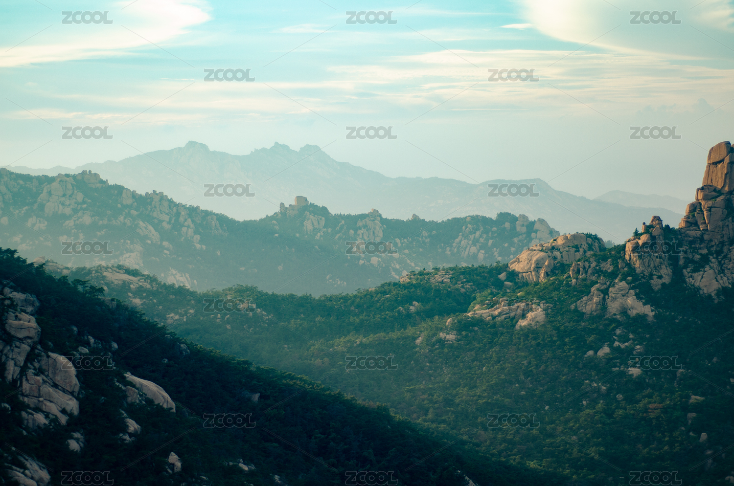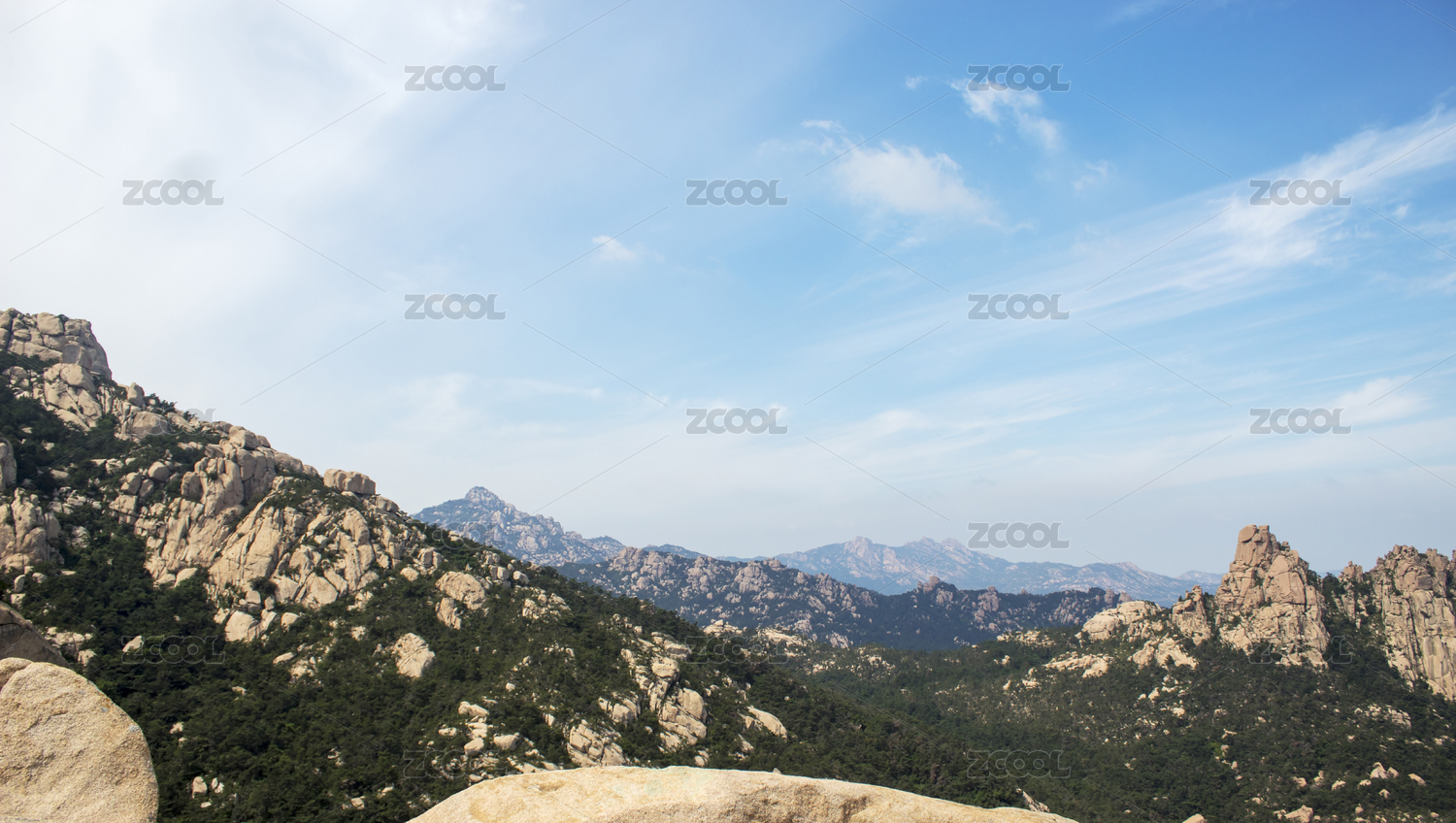 中国山东青岛崂山仰口景区的蓝天白云和山峰