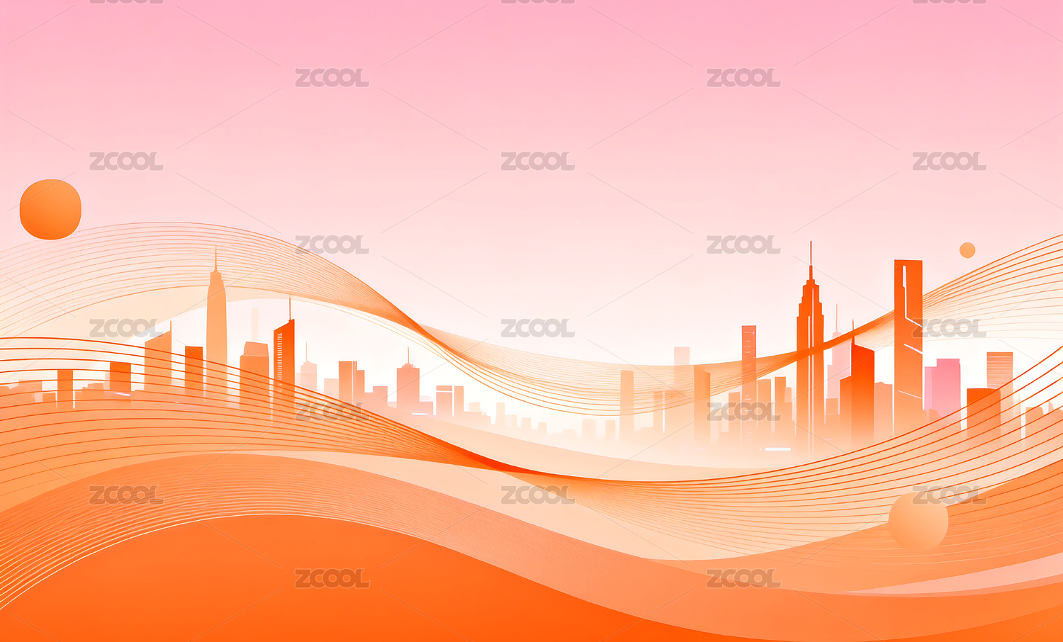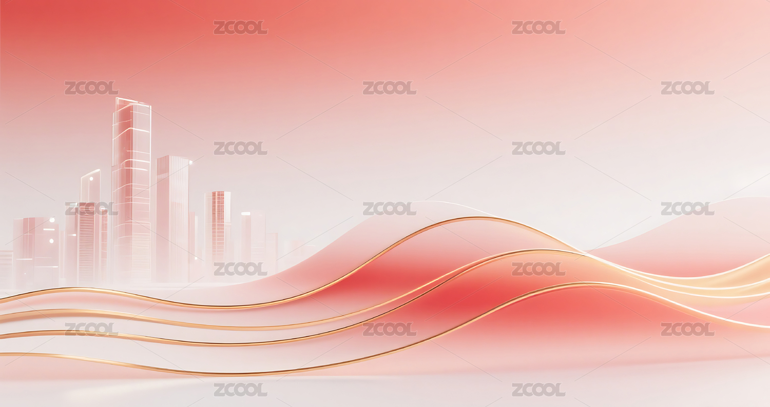 流畅的红金色渐变波浪线条玻璃城市建筑
