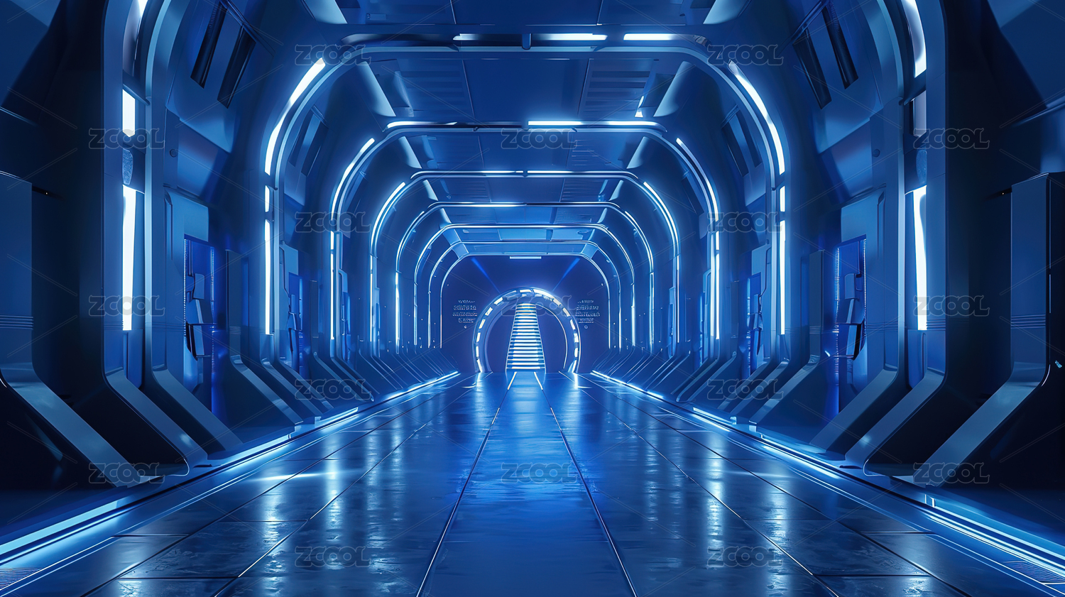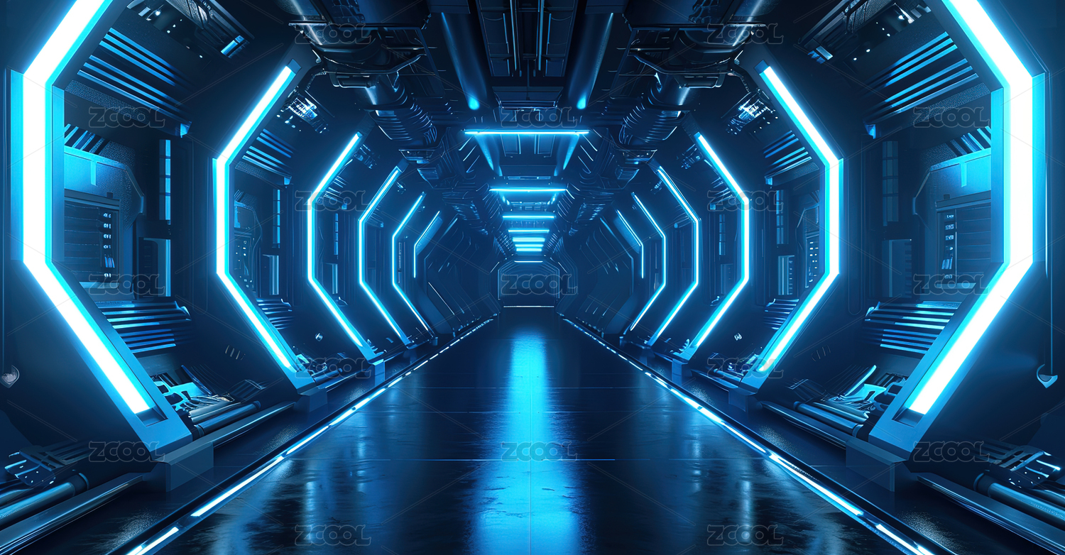 蓝色科幻走廊未来科技感通道