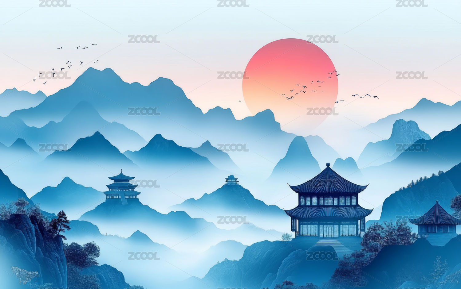 风景,高山,中国画,插画,自然,国风,中国文化,水墨画,地形,宁静