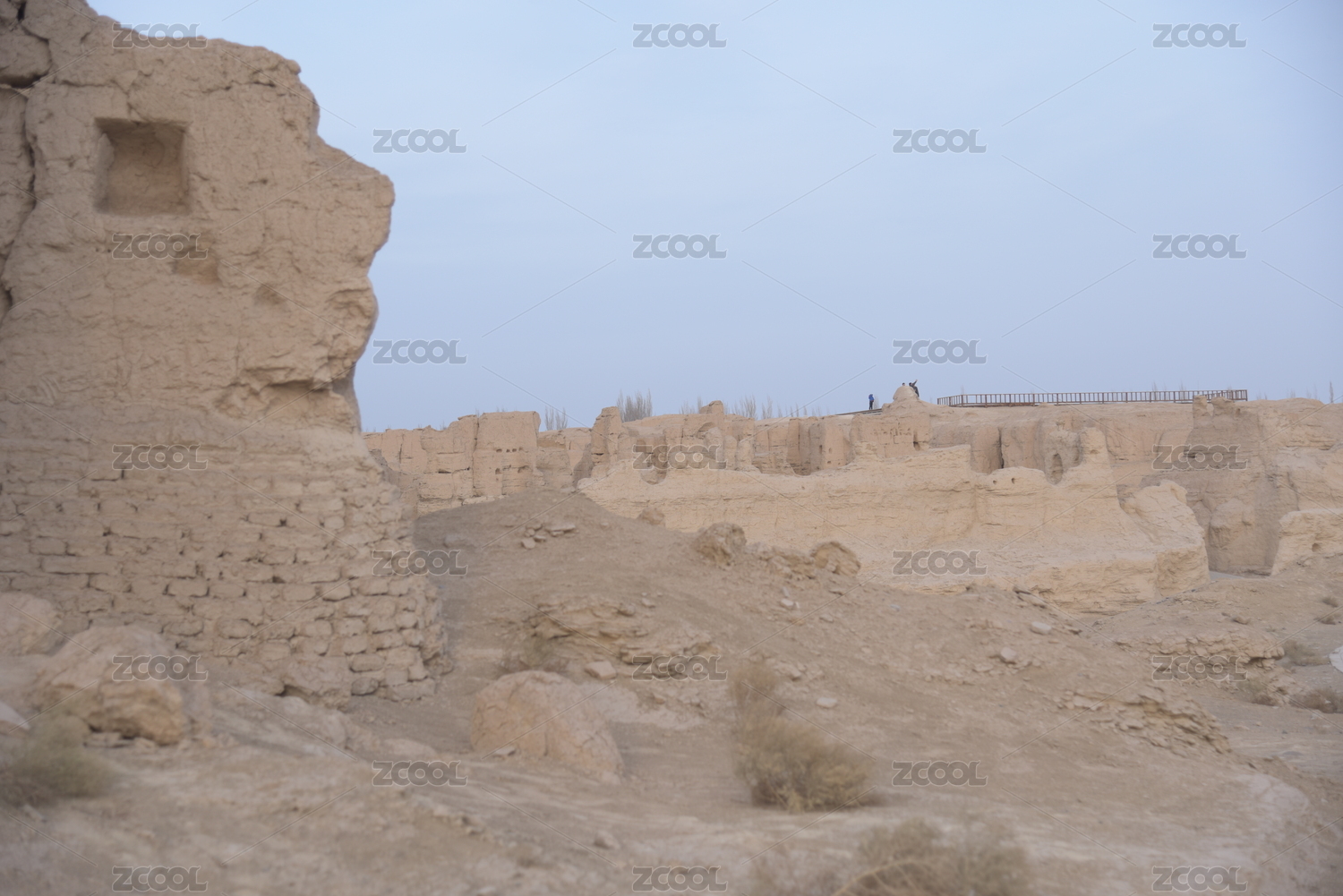 瓜州雕塑长廊荒凉的古老建筑遗址