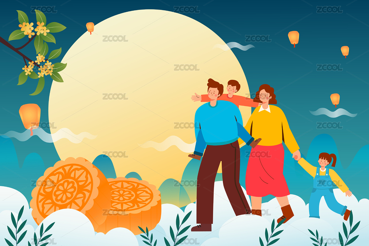 中秋,中秋节,月饼,月亮,满月,圆月,赏月,桂花,孔明灯,夜晚