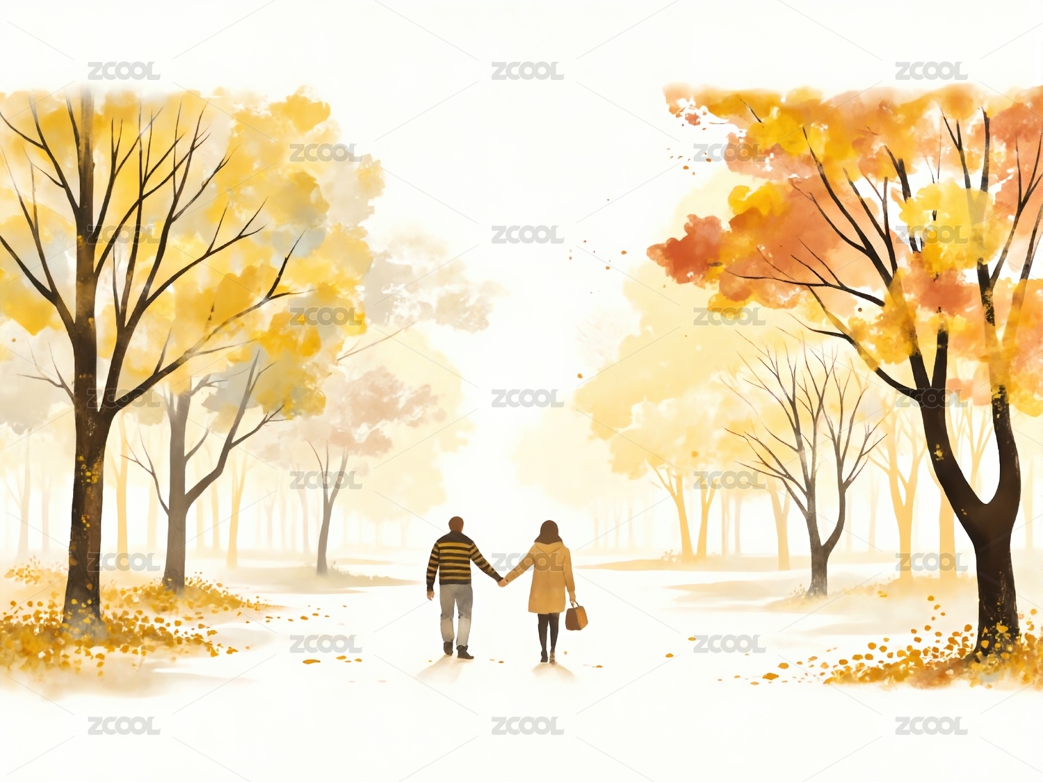 秋天,老人,生活,落叶,黄叶,户外,自然,风景,美景,插画