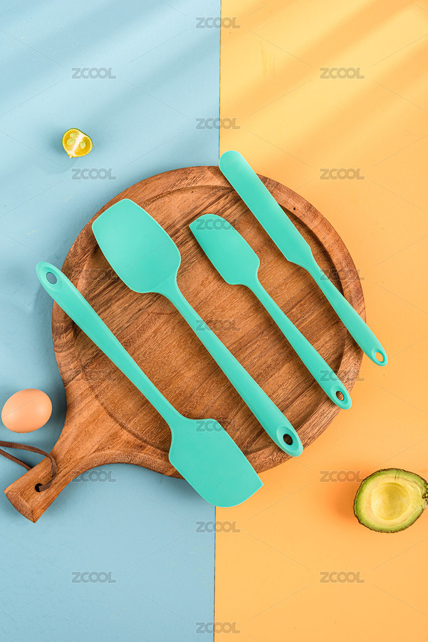 蓝色,窗户光,阳光,硅胶刮刀,刮刀,蛋糕工具,双色背景,鸡蛋,牛油果