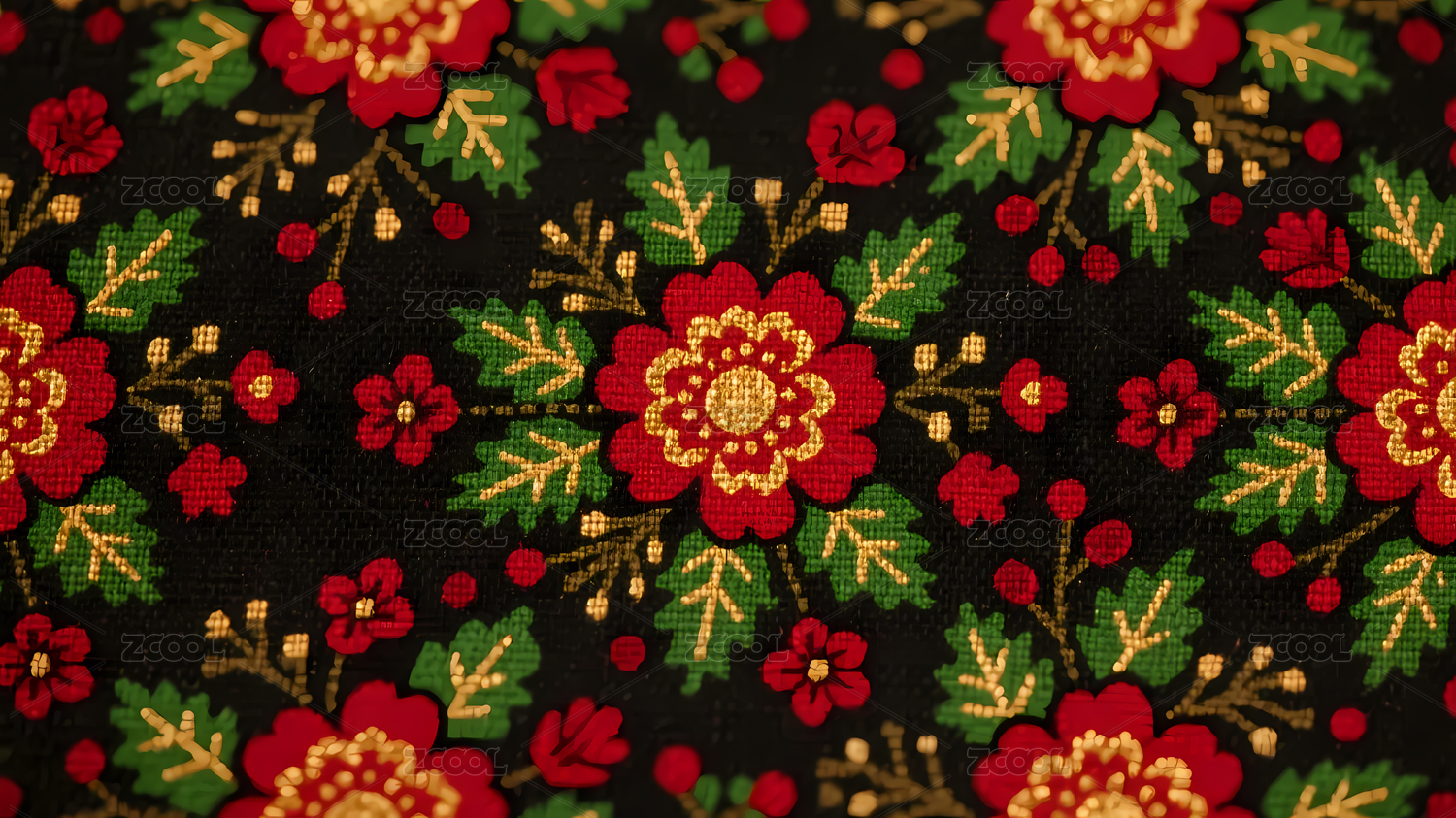 喜庆红绿金花卉纹