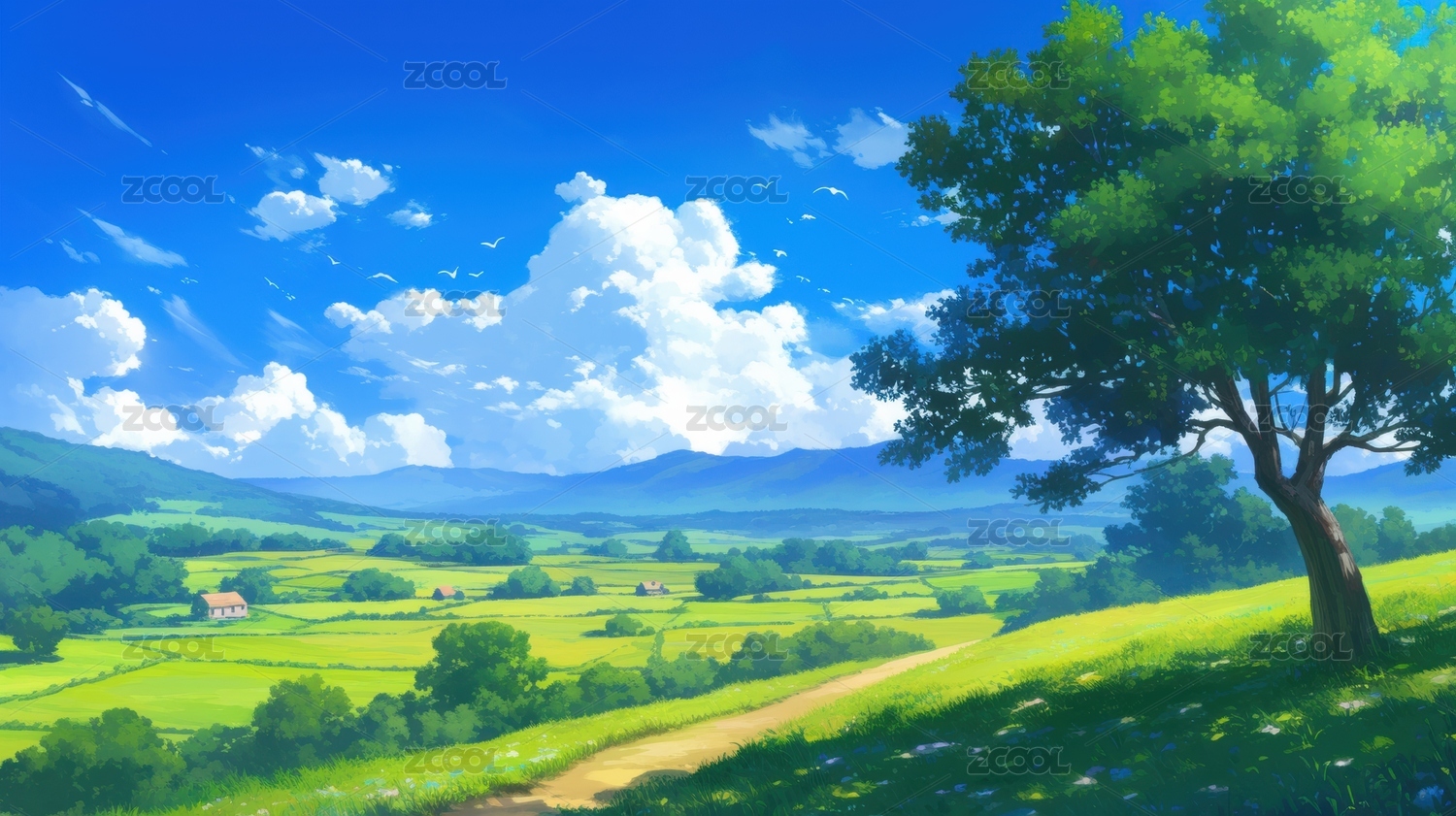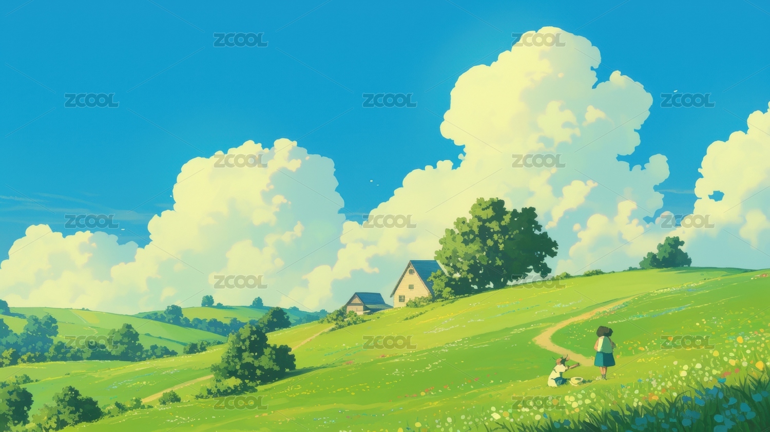 AIGCFG02,自然,日式,清新,小清新,绿色,可爱,卡通,手绘,彩色