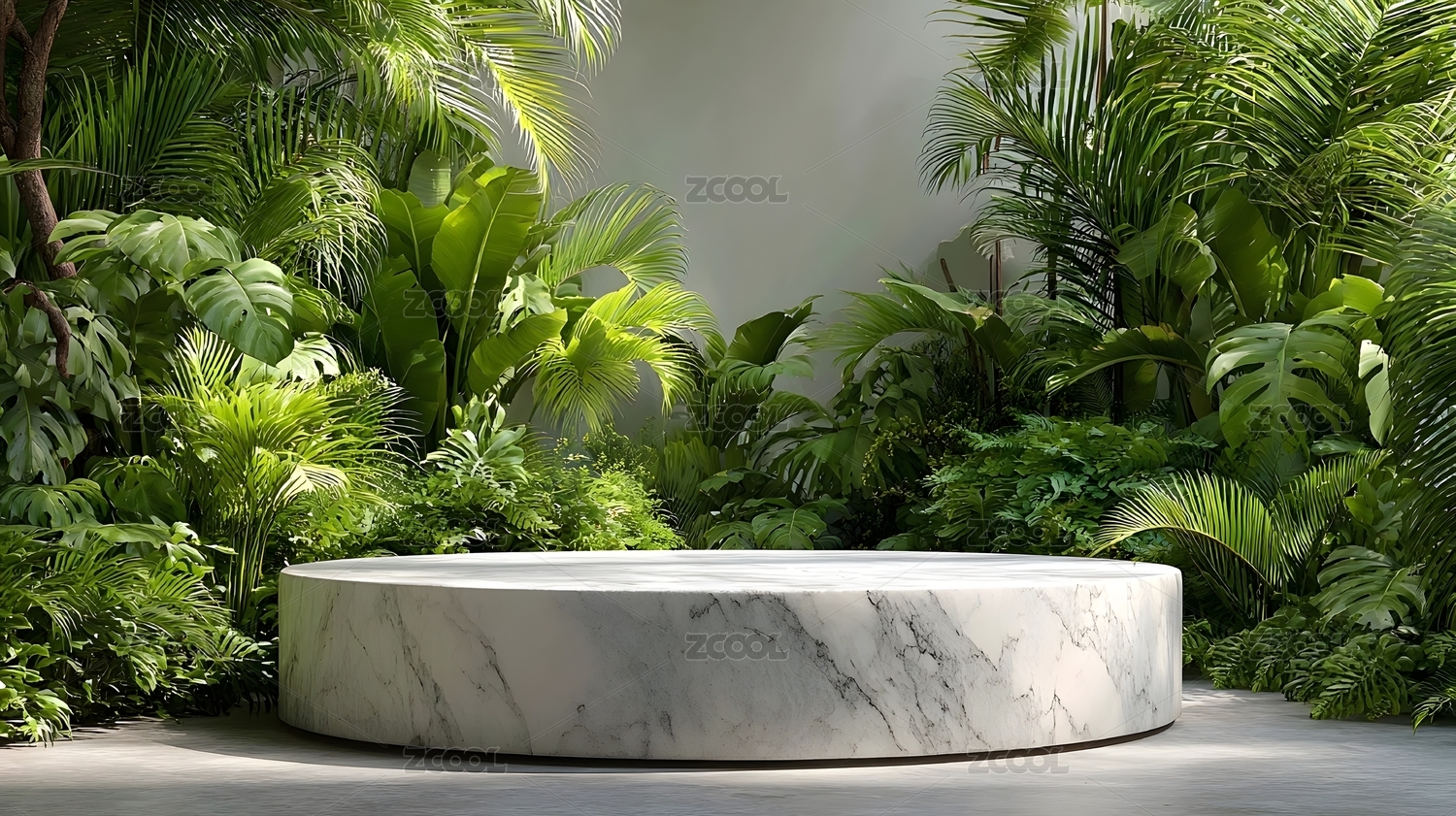 热带植物环绕的大理石展台