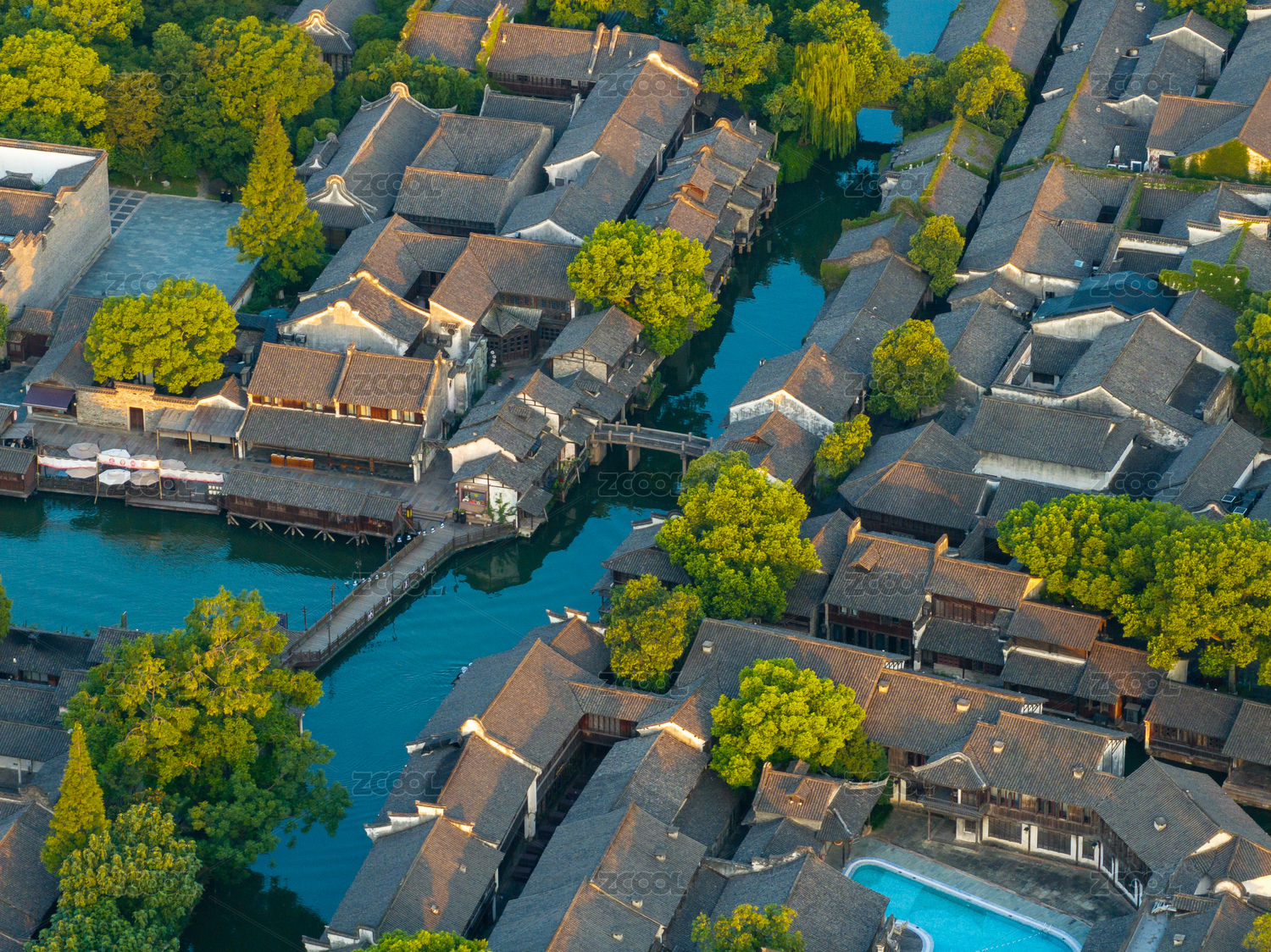 浙江宁波桐乡乌镇西栅古镇江南水乡航拍